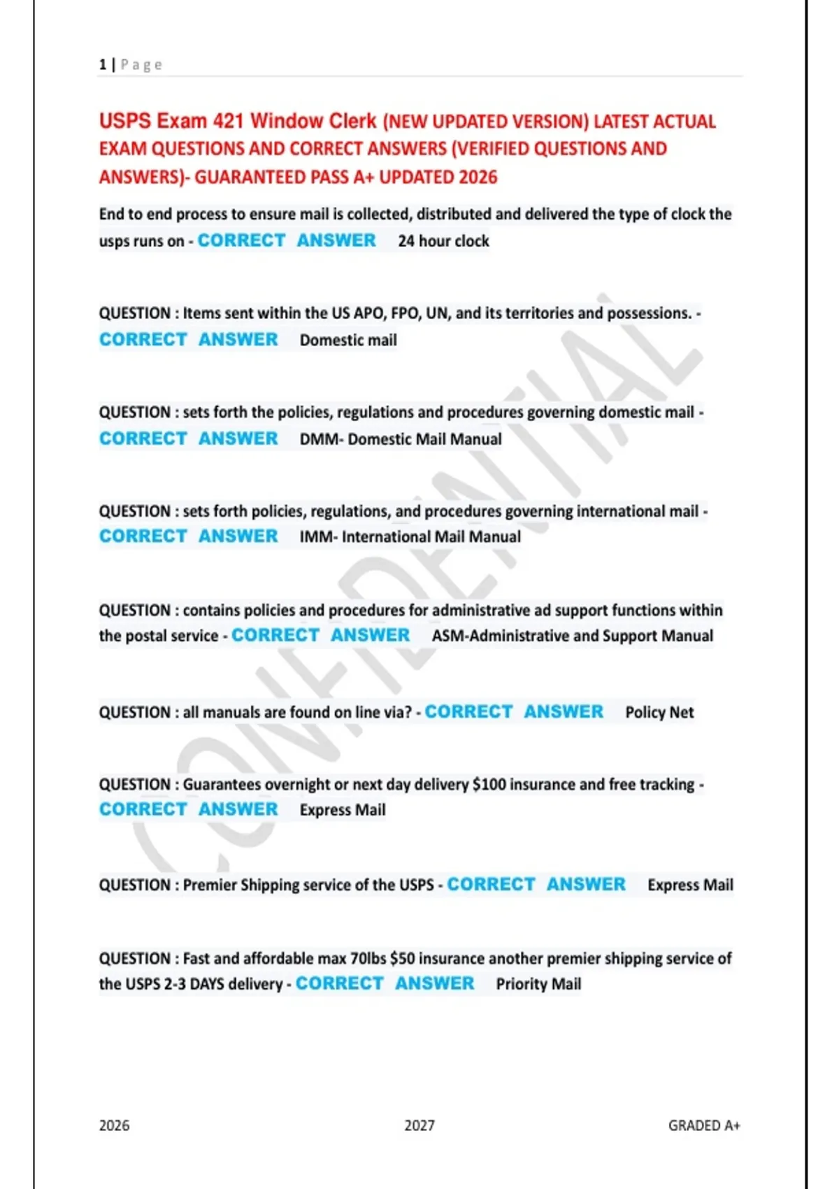 CORRECT ANSWER DMM- Domestic Mail Manual
