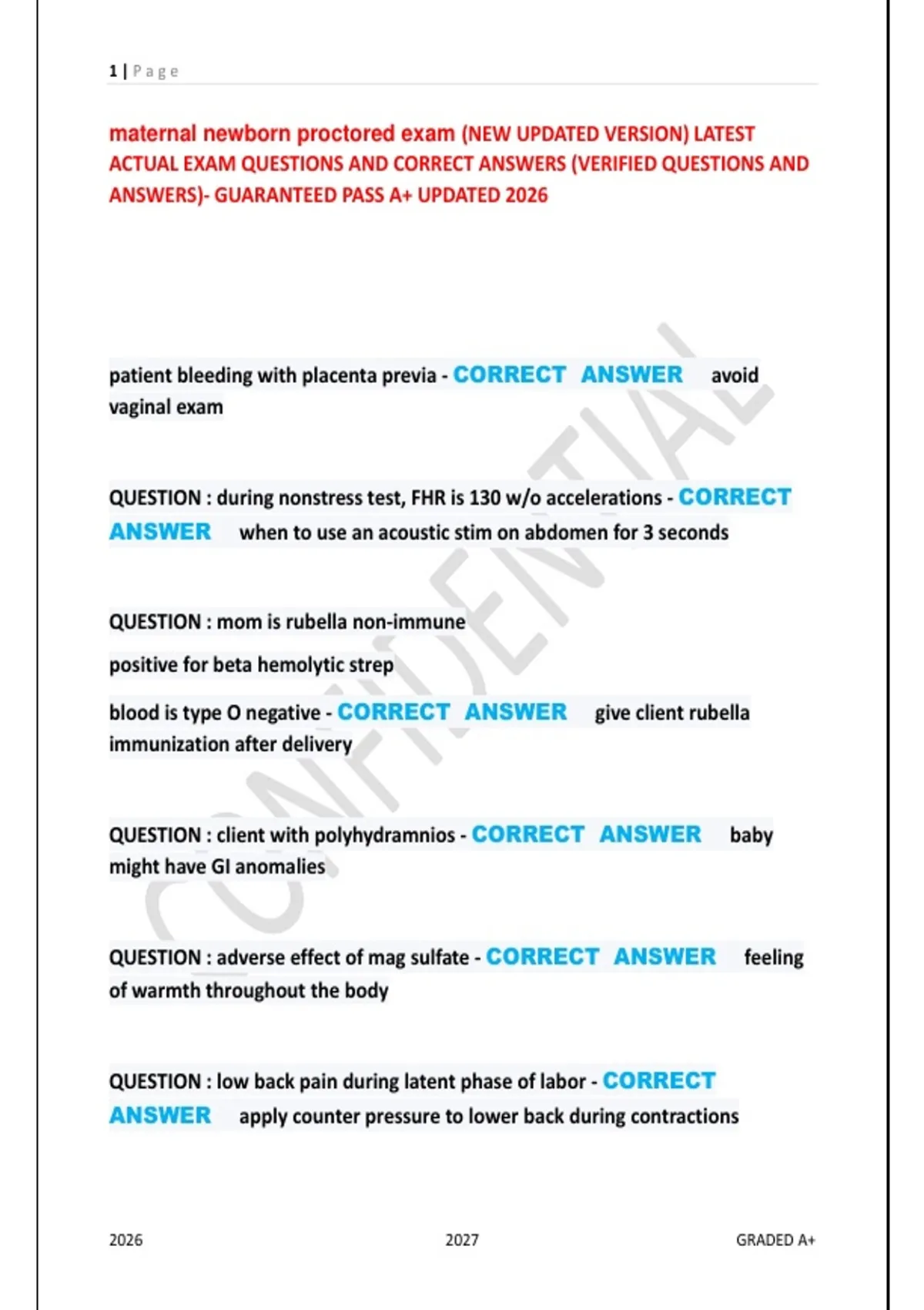 maternal newborn proctored exam (NEW UPDATED VERSION) LATEST