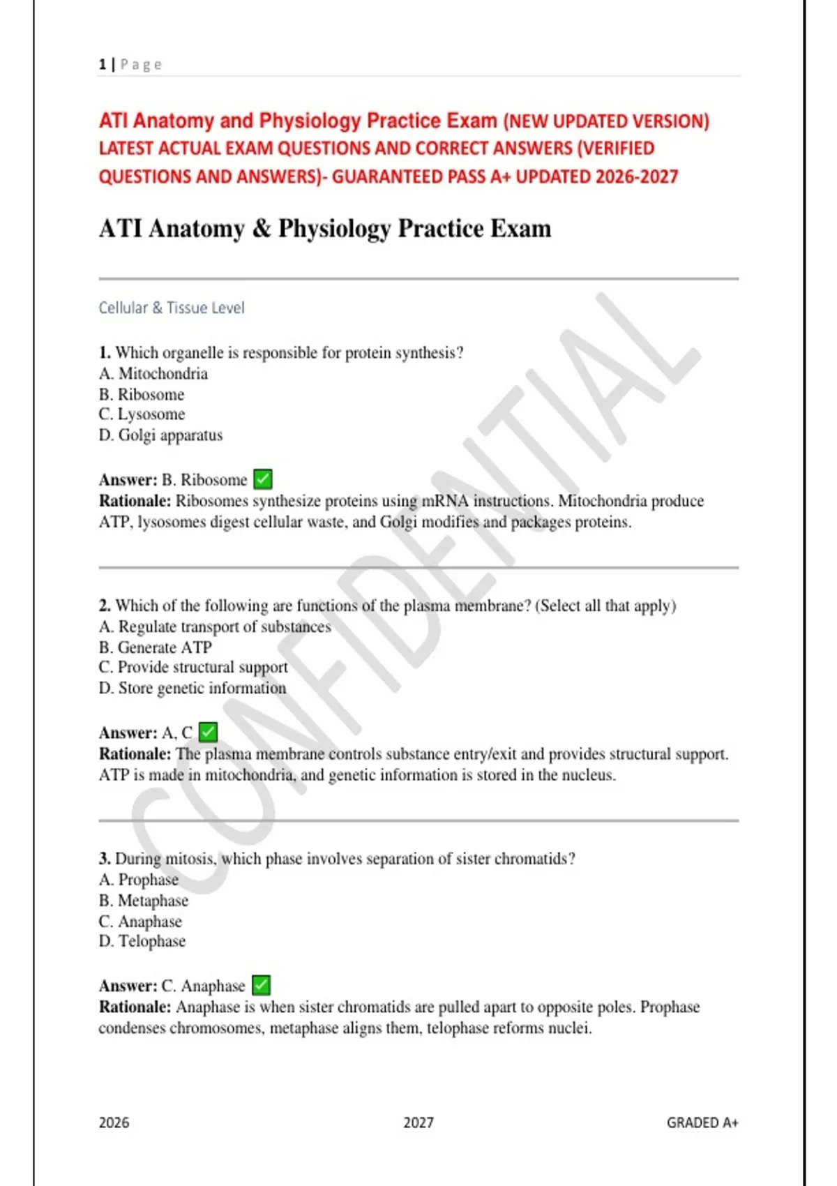 ATI Anatomy and Physiology Practice Exam (NEW UPDATED VERSION)