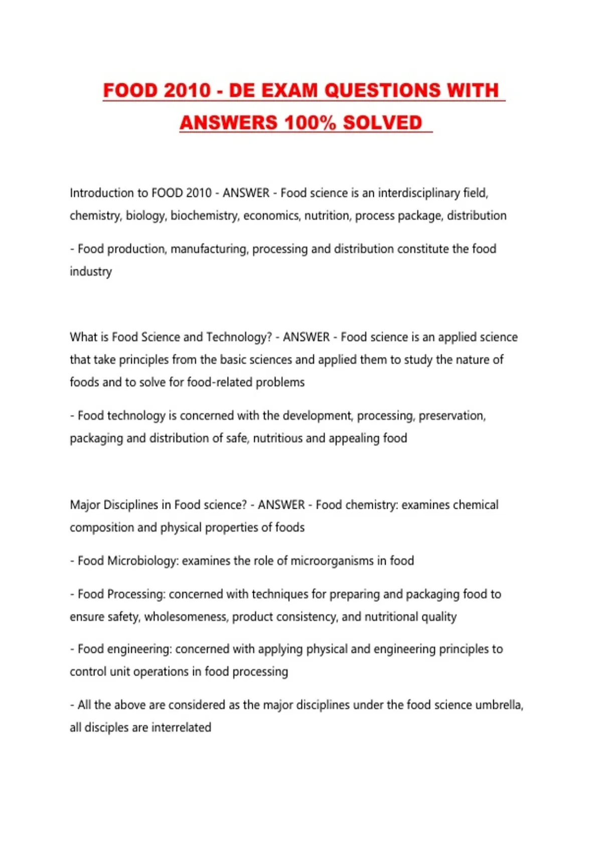 Introduction to FOOD 2010 - ANSWER - Food science is an interdisciplinary field,