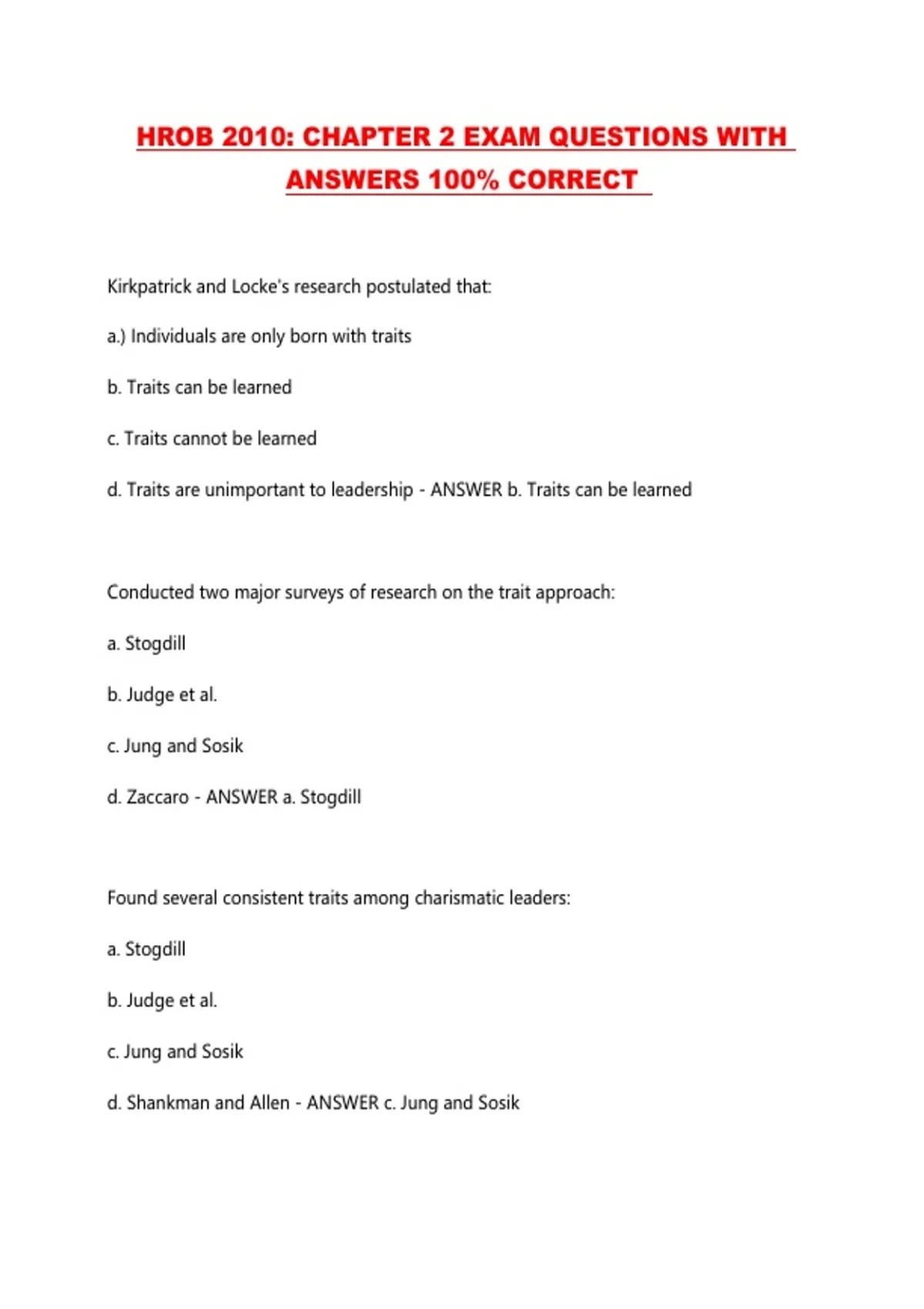 HROB 2010: CHAPTER 2 EXAM QUESTIONS WITH