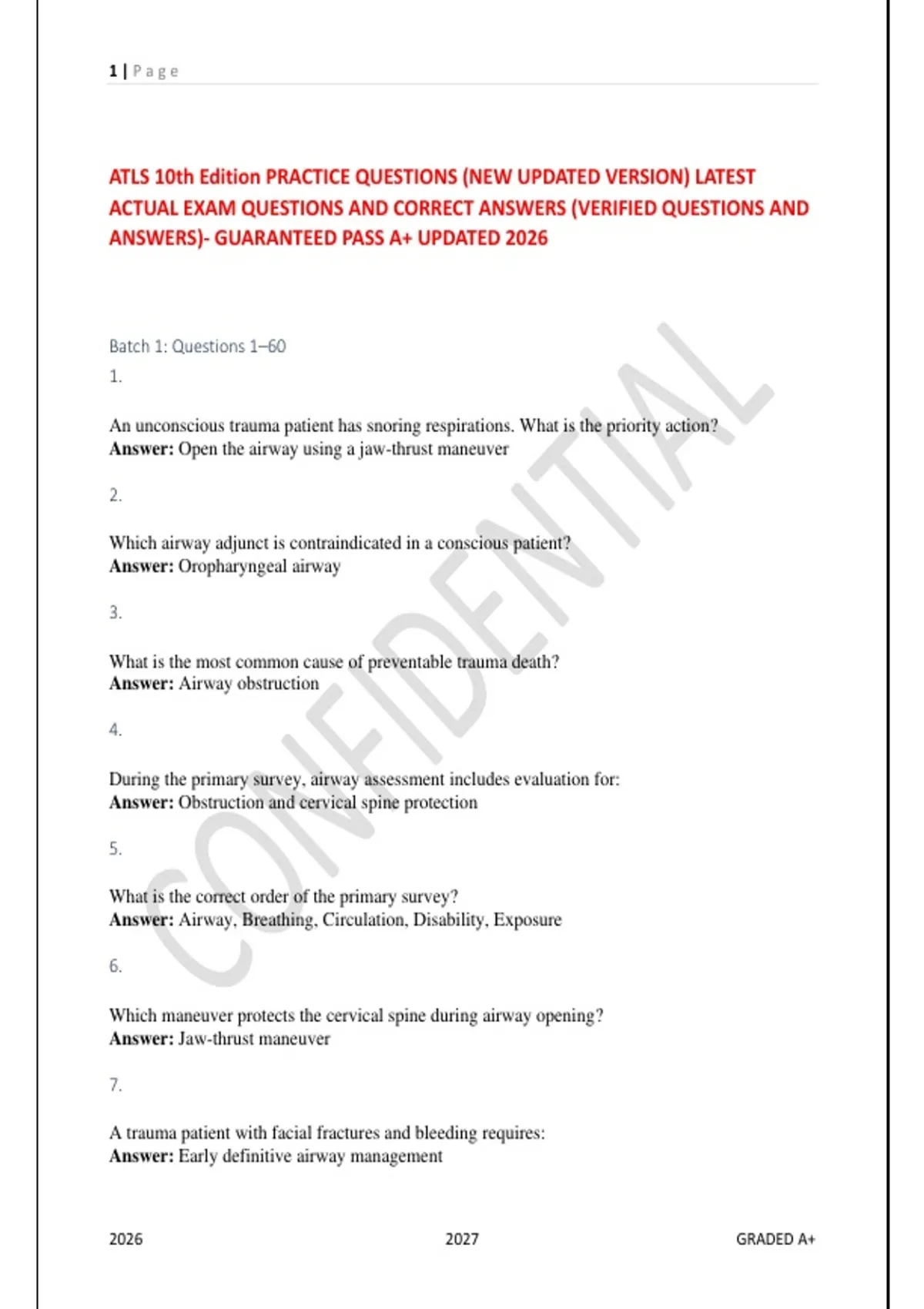ATLS 10th Edition PRACTICE QUESTIONS (NEW UPDATED VERSION) LATEST