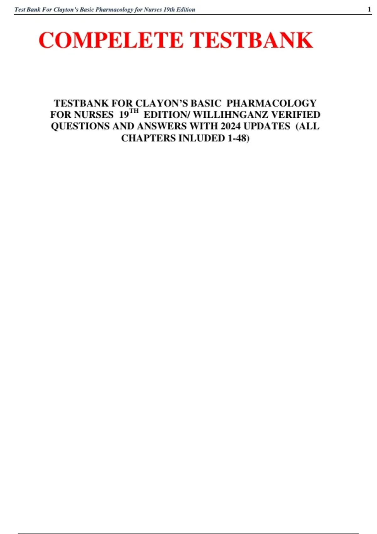 Test Bank For Clayton’s Basic Pharmacology for Nurses 19th Edition 1