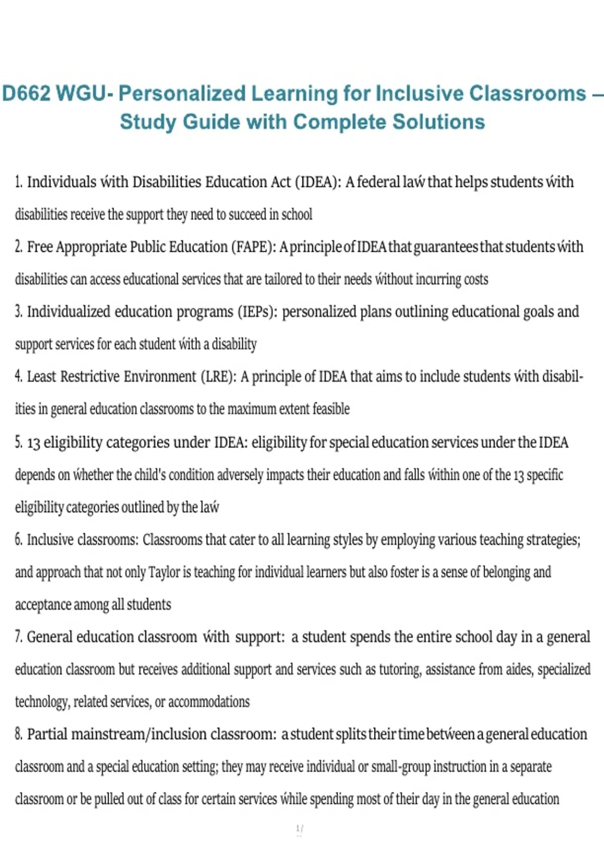 4. Least Restrictive Environment (LRE): A principle of IDEA that aims to include students ẃith disabil-