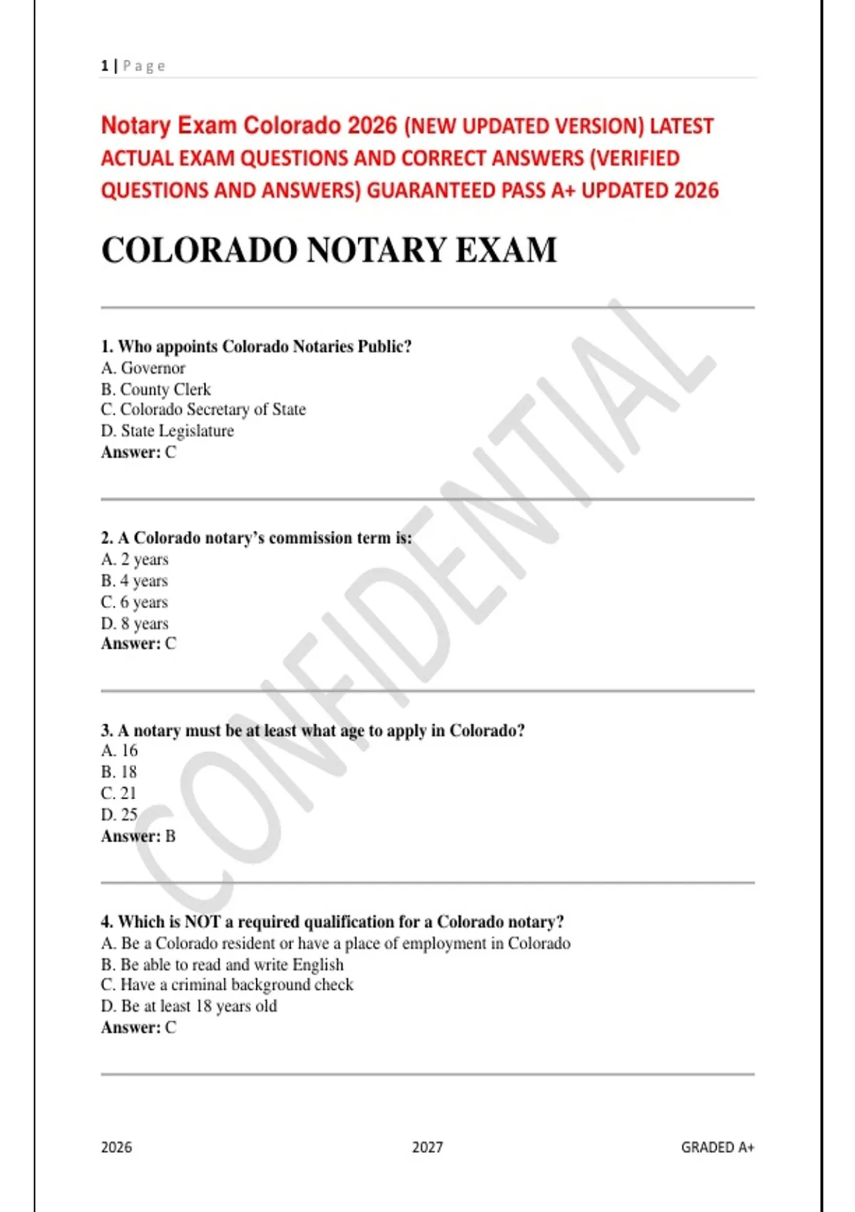 Notary Exam Colorado 2026 (NEW UPDATED VERSION) LATEST
