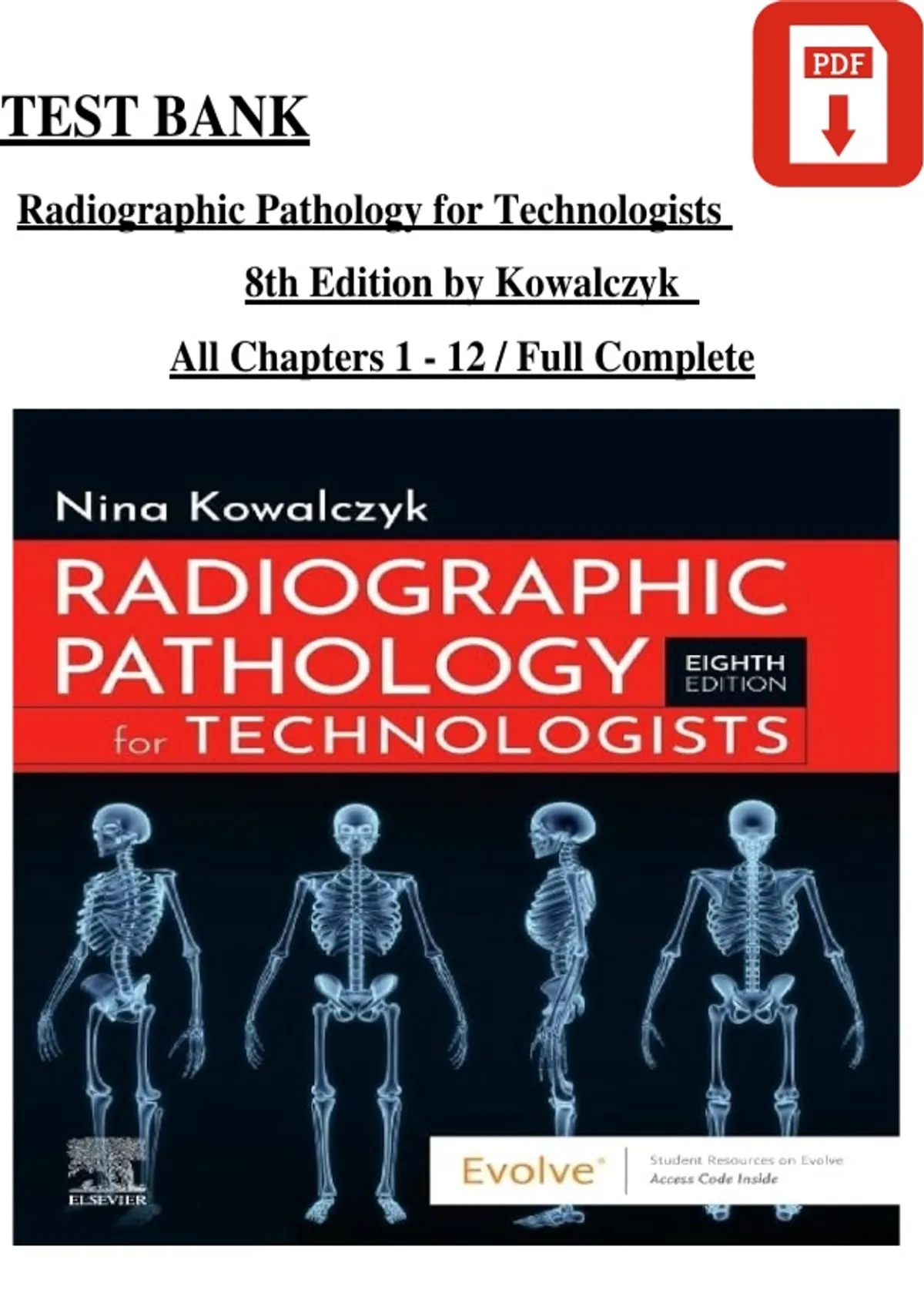 Prepare confidently for radiography exams, pathology coursework, and clinical assessments with this comprehensive Test Bank for Radiographic Pathology for Technologists, 8th Edition — fully updated for 2026! This essential academic resource includes a wide range of practice questions paired with 100% accurate answers, aligned with the textbook’s content and structured to reflect real classroom, board-style, and clinical exam formats used in radiologic technology and allied health programs. Ideal for radiography students, diagnostic imaging learners, and educators, this test bank reinforces core pathology concepts including: Disease processes and pathophysiology Radiographic appearance of common conditions System-by-system pathology (e.g., musculoskeletal, cardiovascular, pulmonary, GI, GU, CNS) Imaging features and clinical significance Differential diagnosis and interpretation Patient care considerations and safety Whether you’re preparing for chapter quizzes, unit exams, midterms, finals, or credentialing reviews (e.g., ARRT), this test bank strengthens your understanding, enhances retention, and builds confidence in applying pathology knowledge to radiographic practice. Author: Nina Kowalczyk