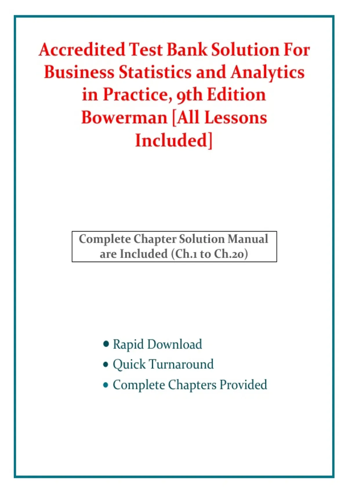 Here is the table of contents for Business Statistics and Analytics in Practice, 9th Edition by Bruce L. Bowerman,