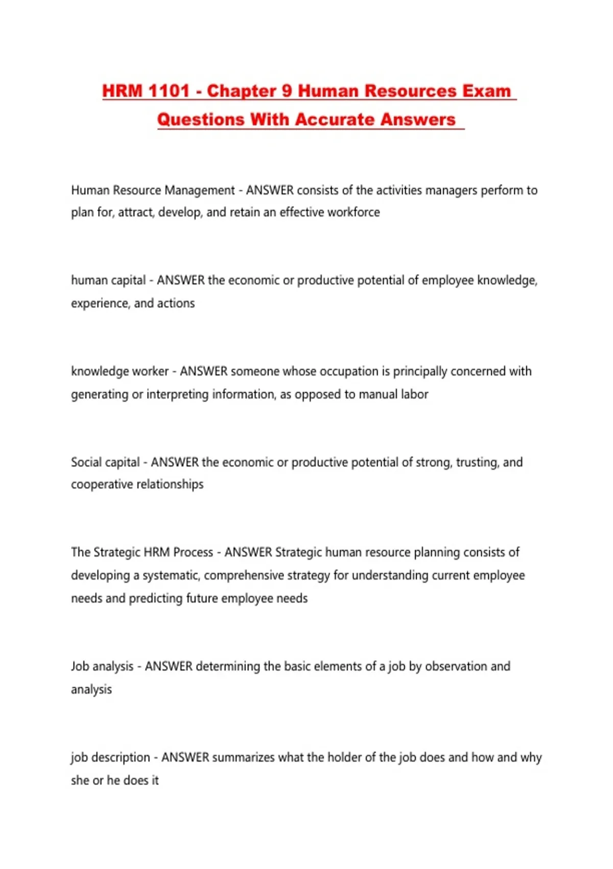 HRM 1101 - Chapter 9 Human Resources Exam