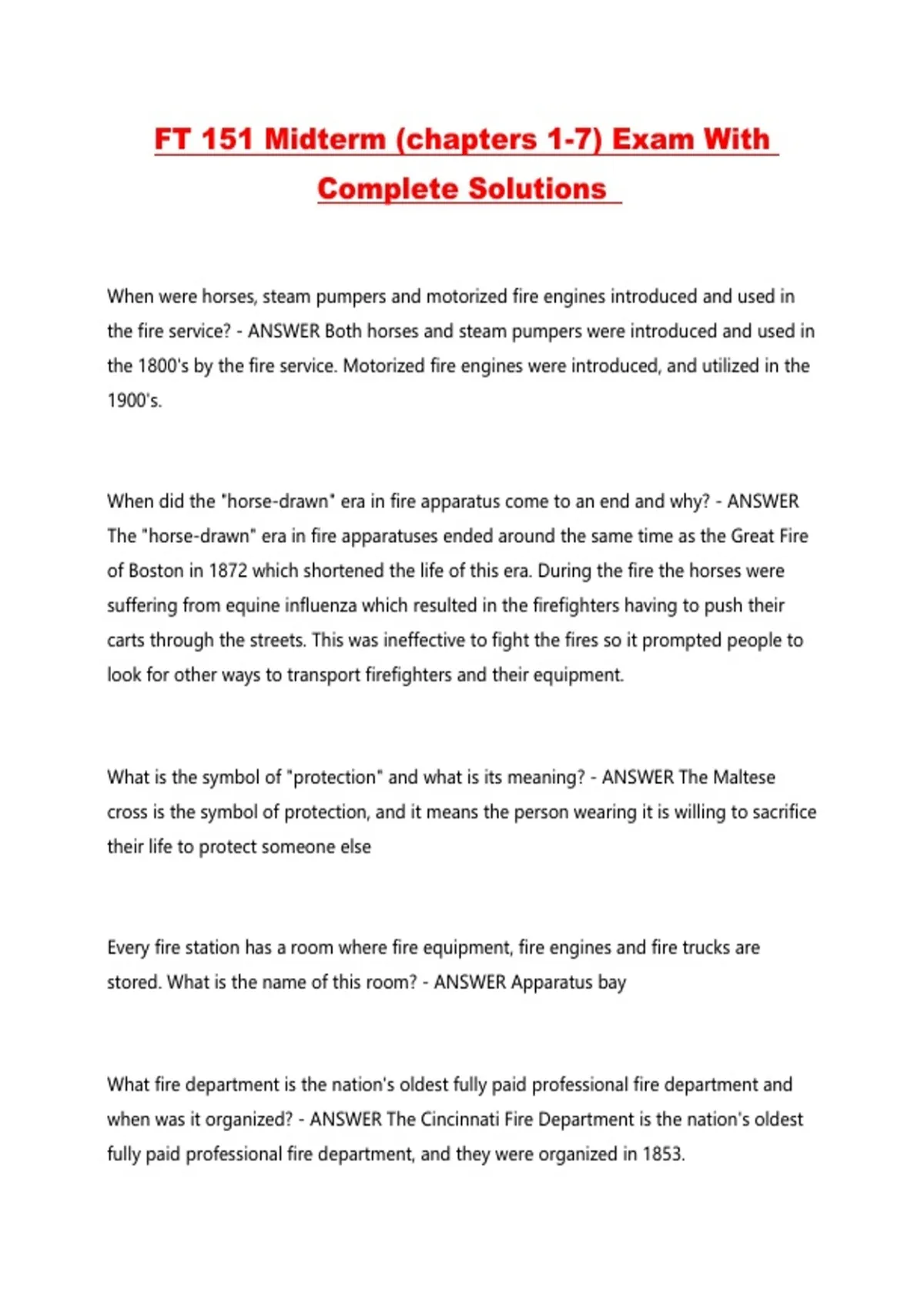 FT 151 Midterm (chapters 1-7) Exam With Complete Solutions ...