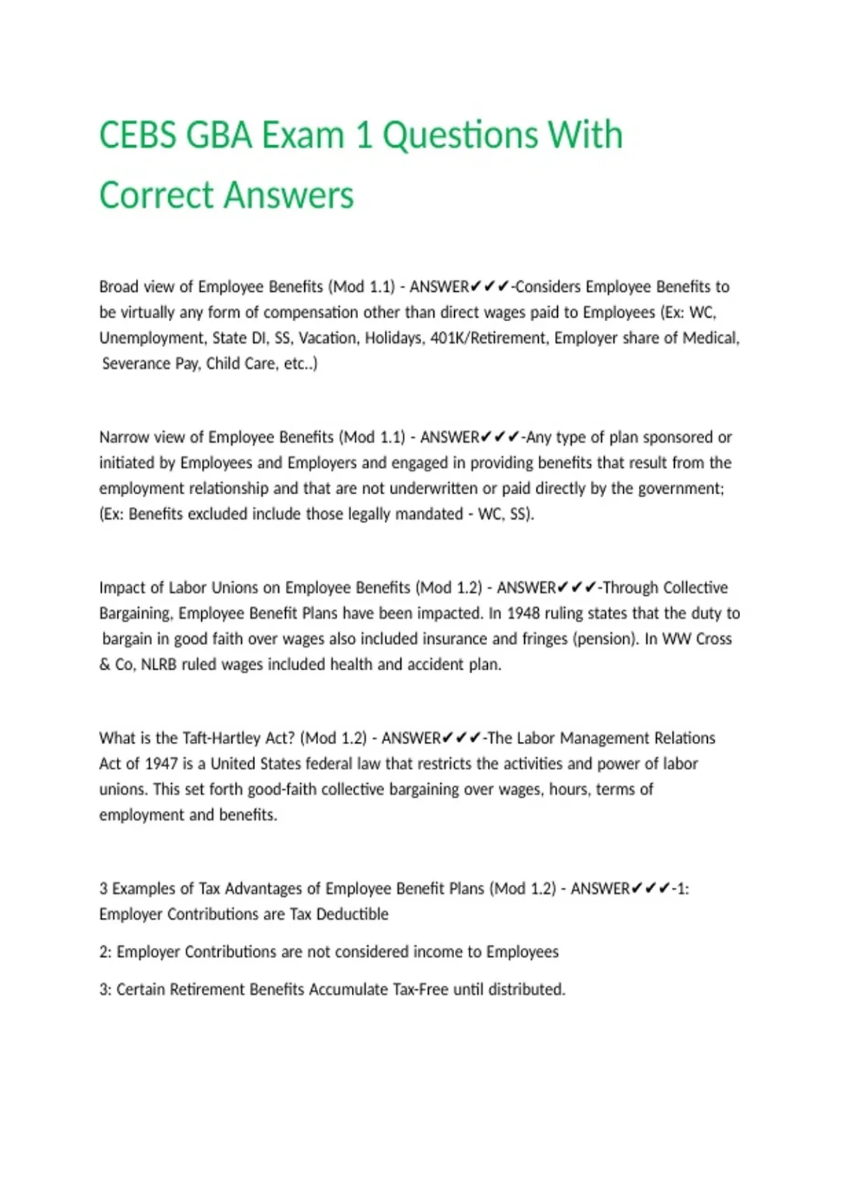 3 |Examples |of |Tax |Advantages |of |Employee |Benefit |Plans |(Mod |1.2) |- |ANSWER✔✔✔-1: |
