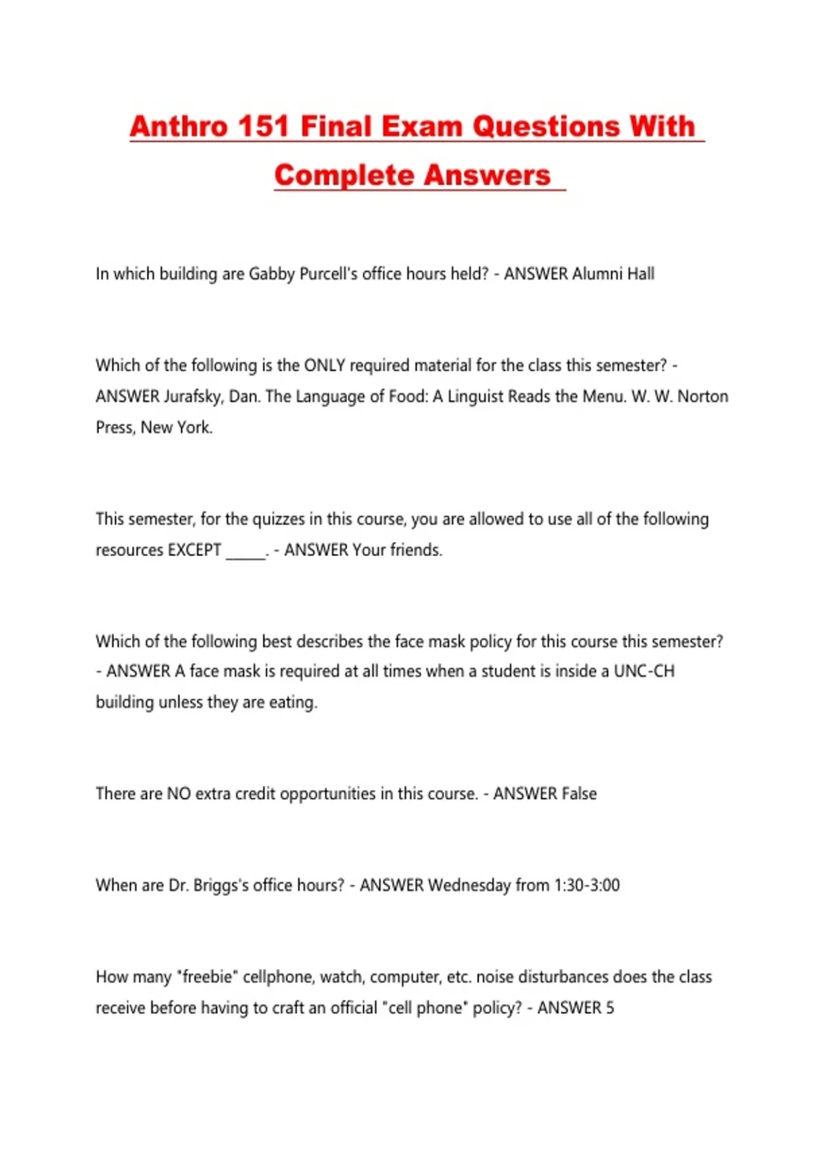 Anthro 151 Final Exam Questions With