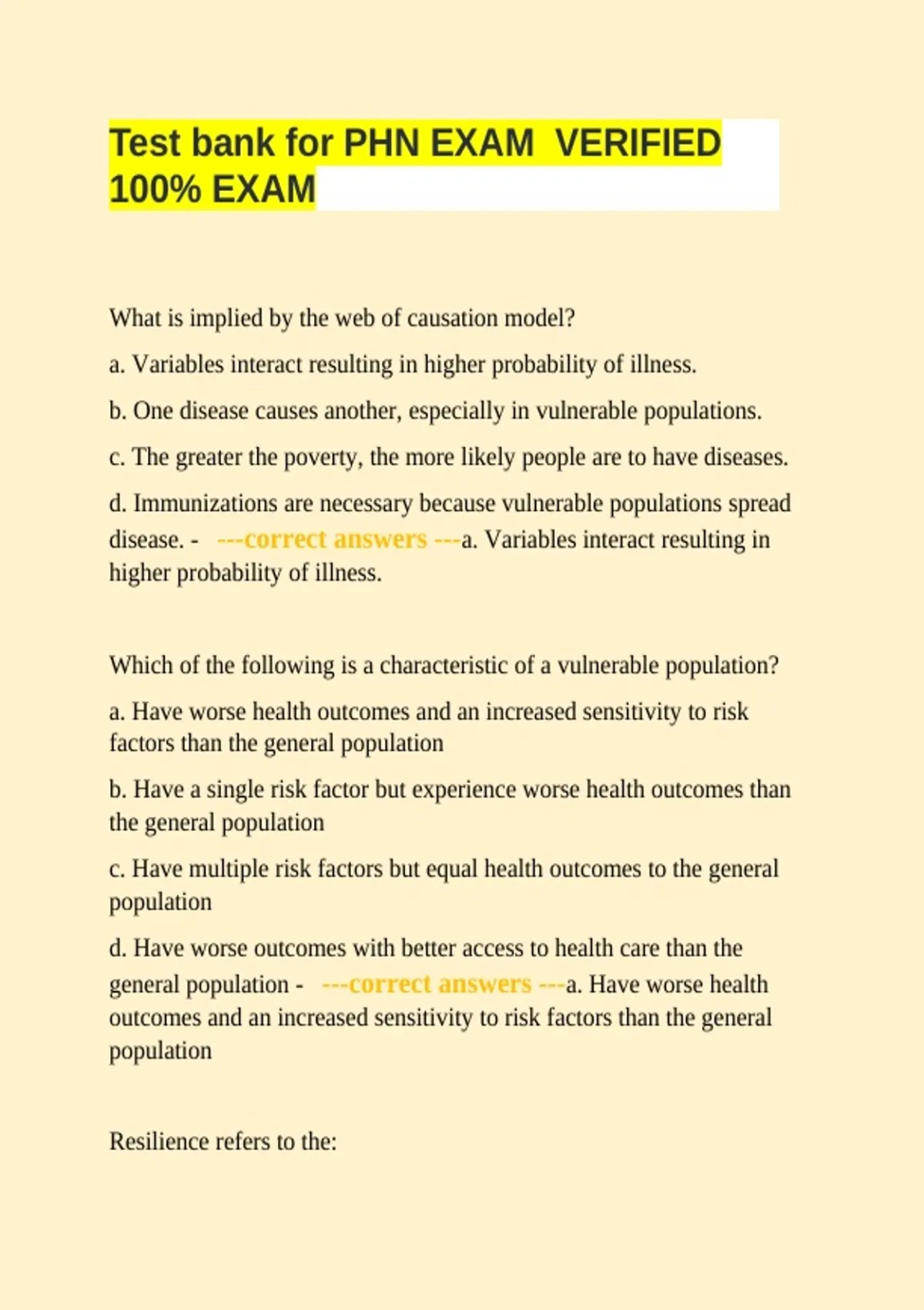 - ---correct answers ---a. resistance of certain groups to risk factors.