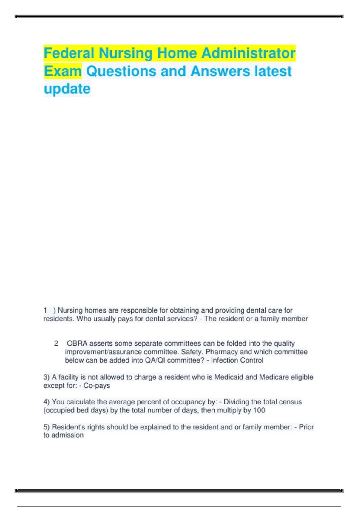 Exam Questions and Answers latest