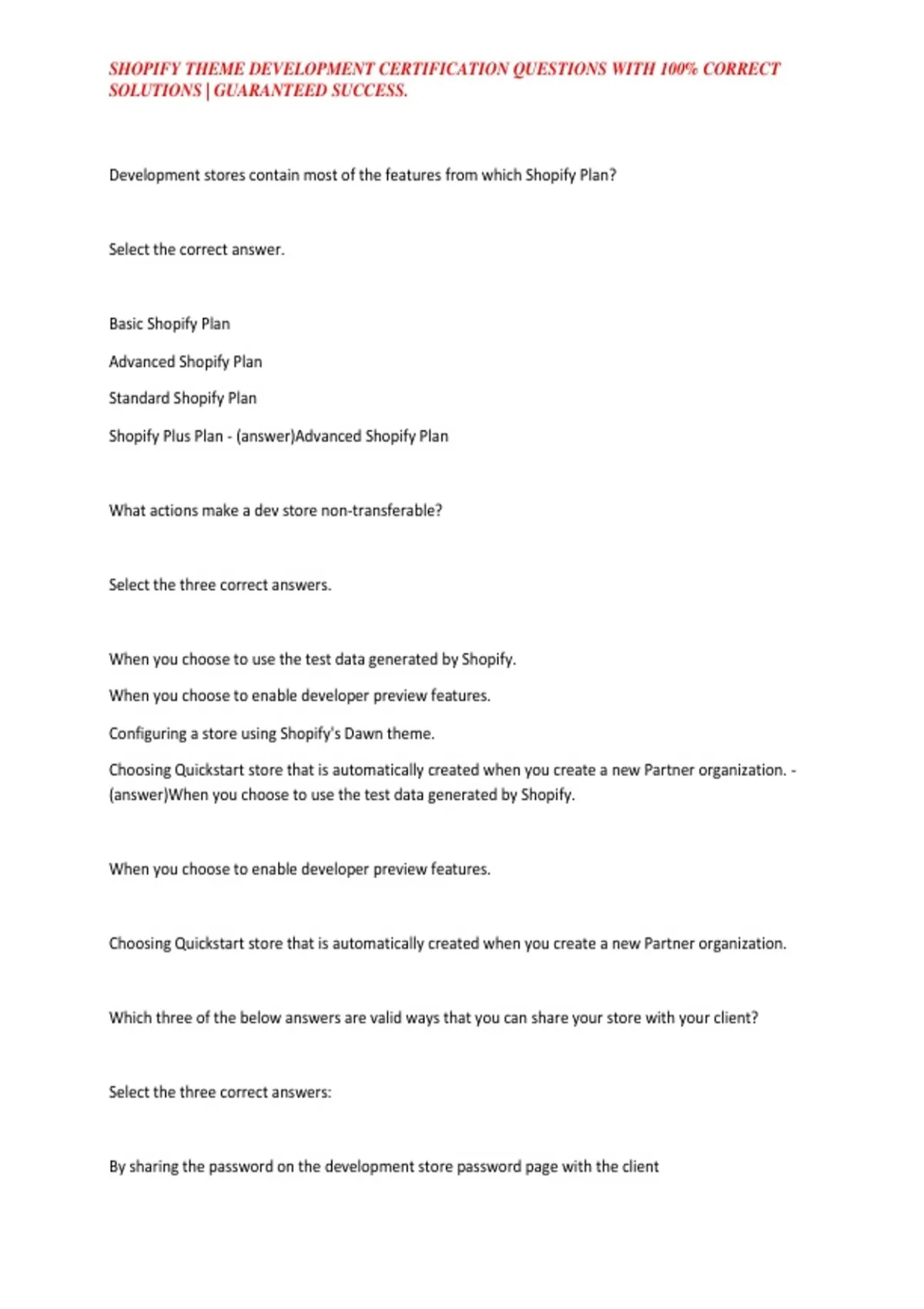 , SHOPIFY THEME DEVELOPMENT CERTIFICATION QUESTIONS WITH 100% CORRECT