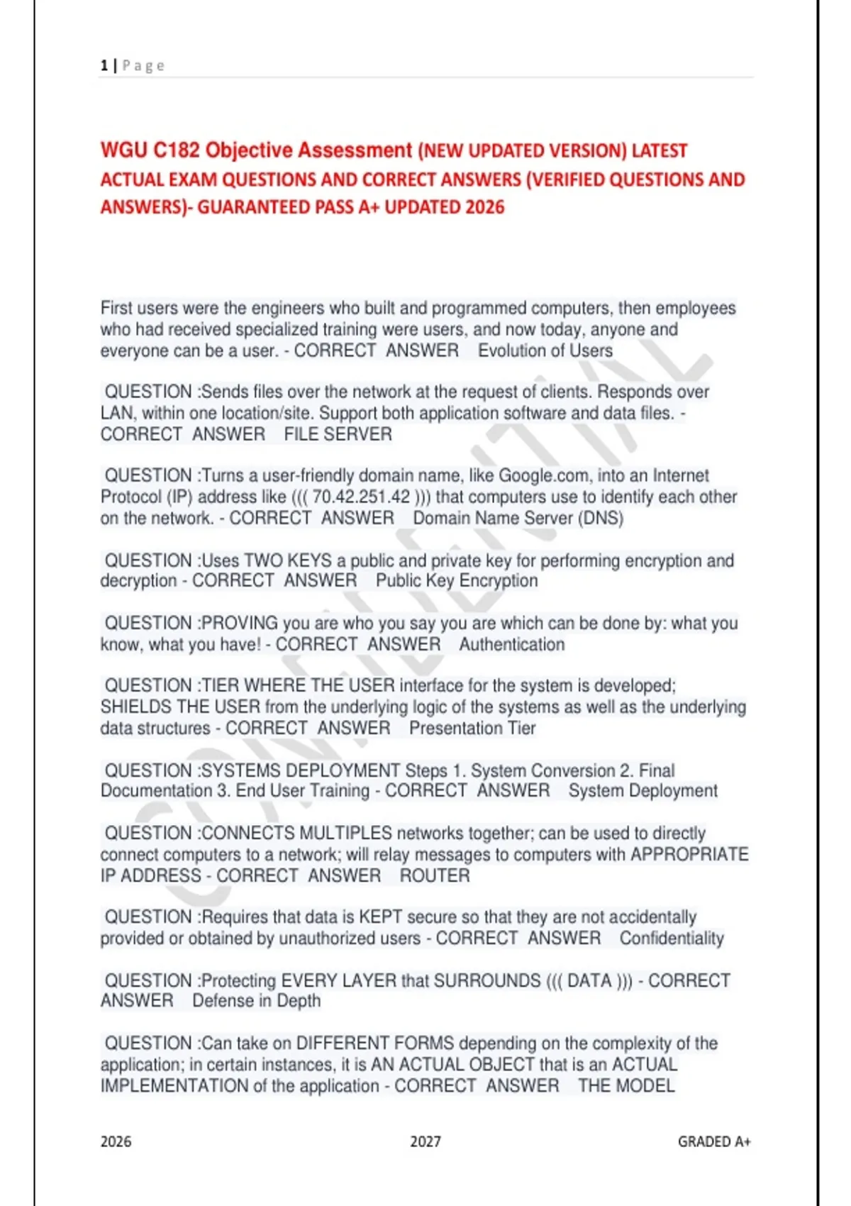 WGU C182 Objective Assessment (NEW UPDATED VERSION) LATEST
