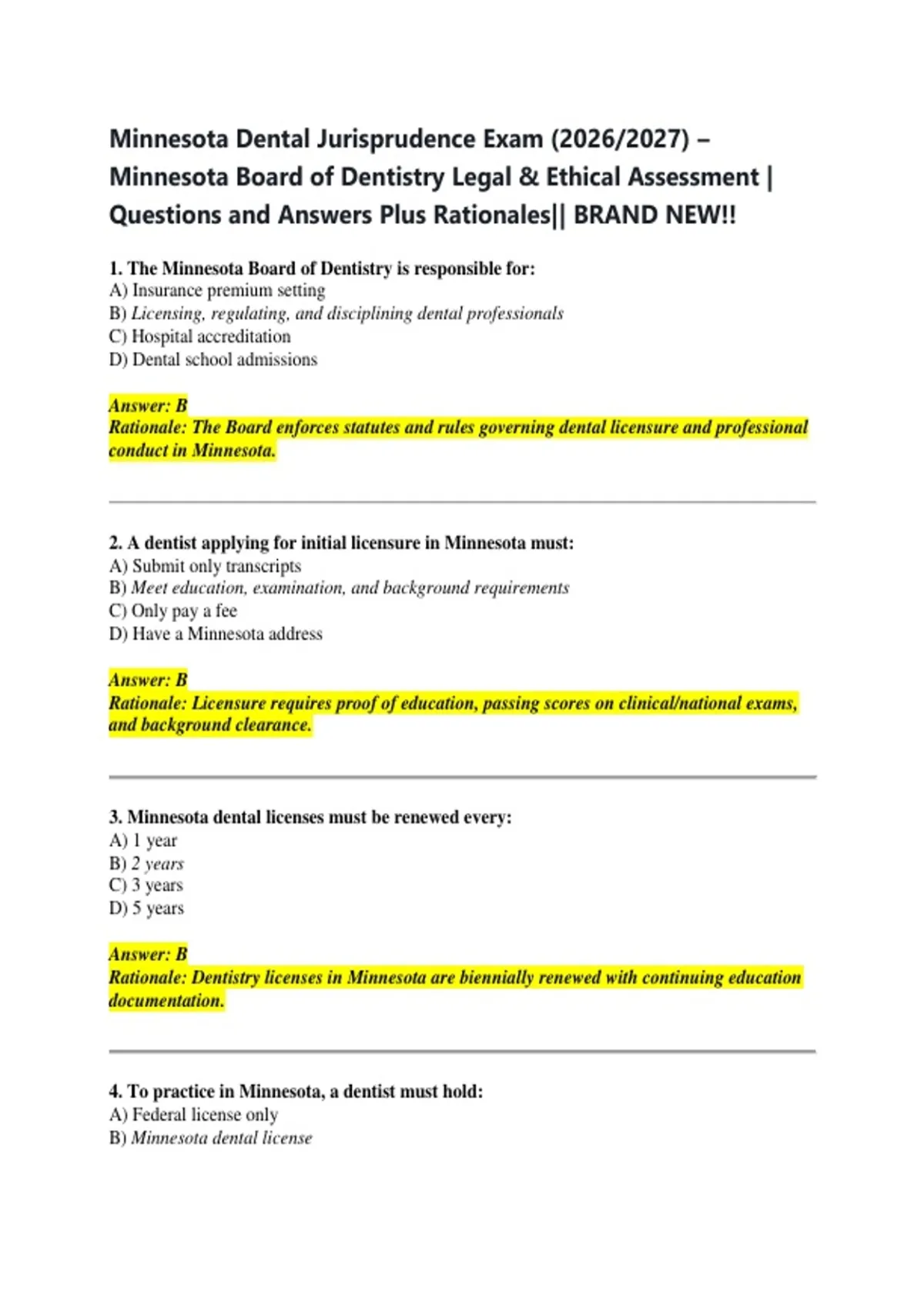 Minnesota Dental Jurisprudence Exam (2026/2027) –