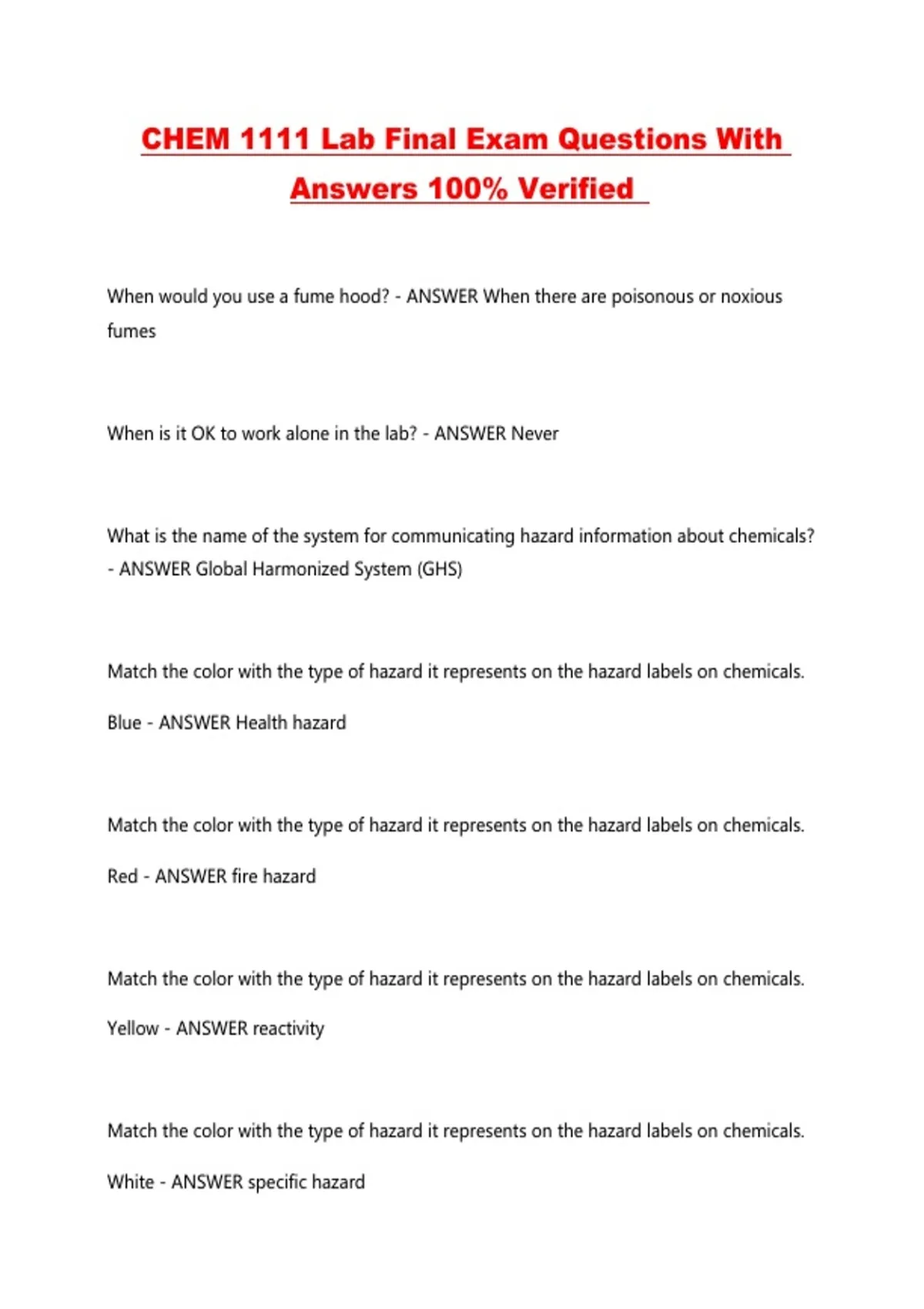 CHEM 1111 Lab Final Exam Questions With Answers 100% Verified ...