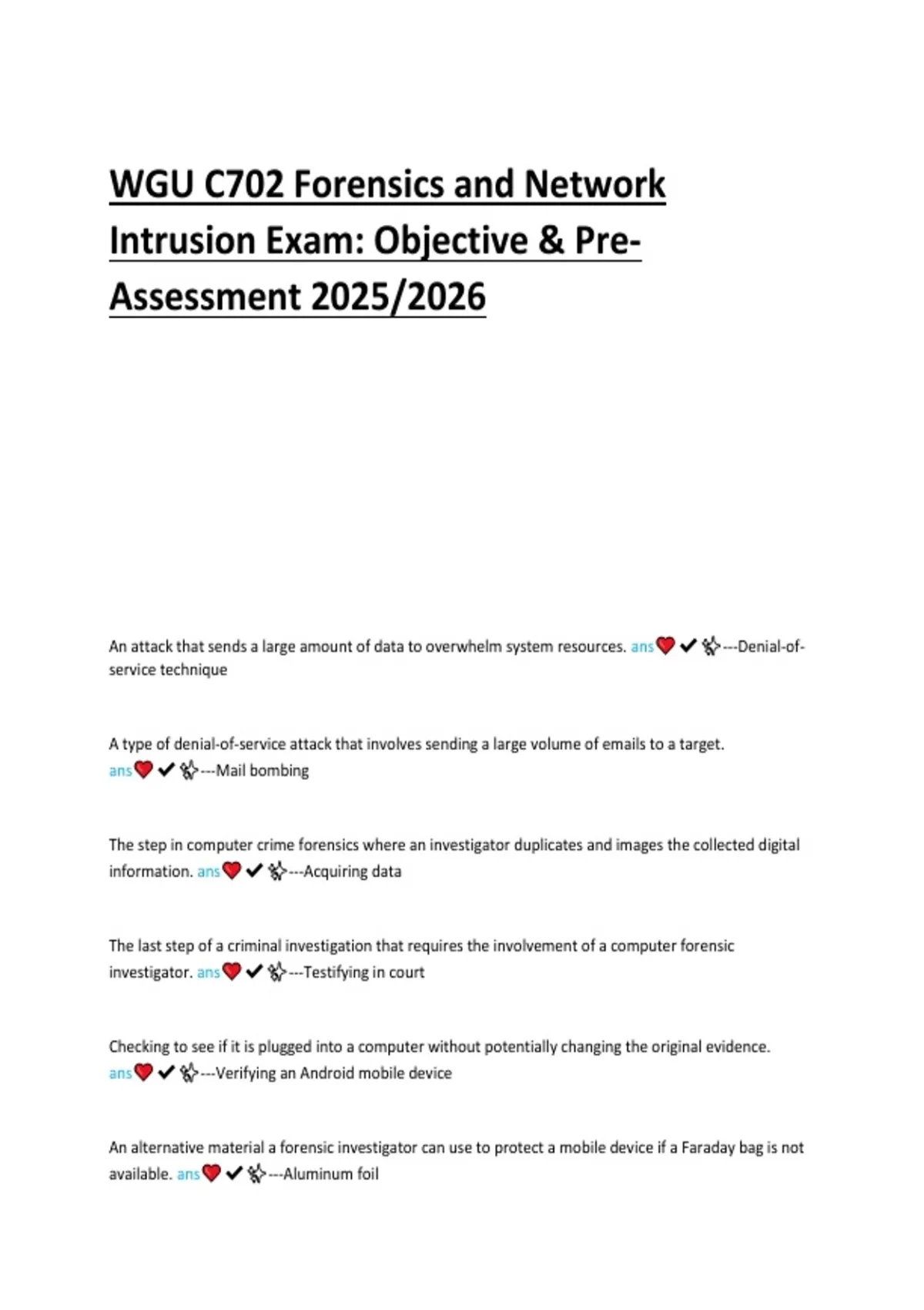 Ace your WGU C702 Forensics and Network Intrusion exam with our 2025/2026 objective and pre-assessment guide. Includes key concepts, practice questions, and exam strategies.