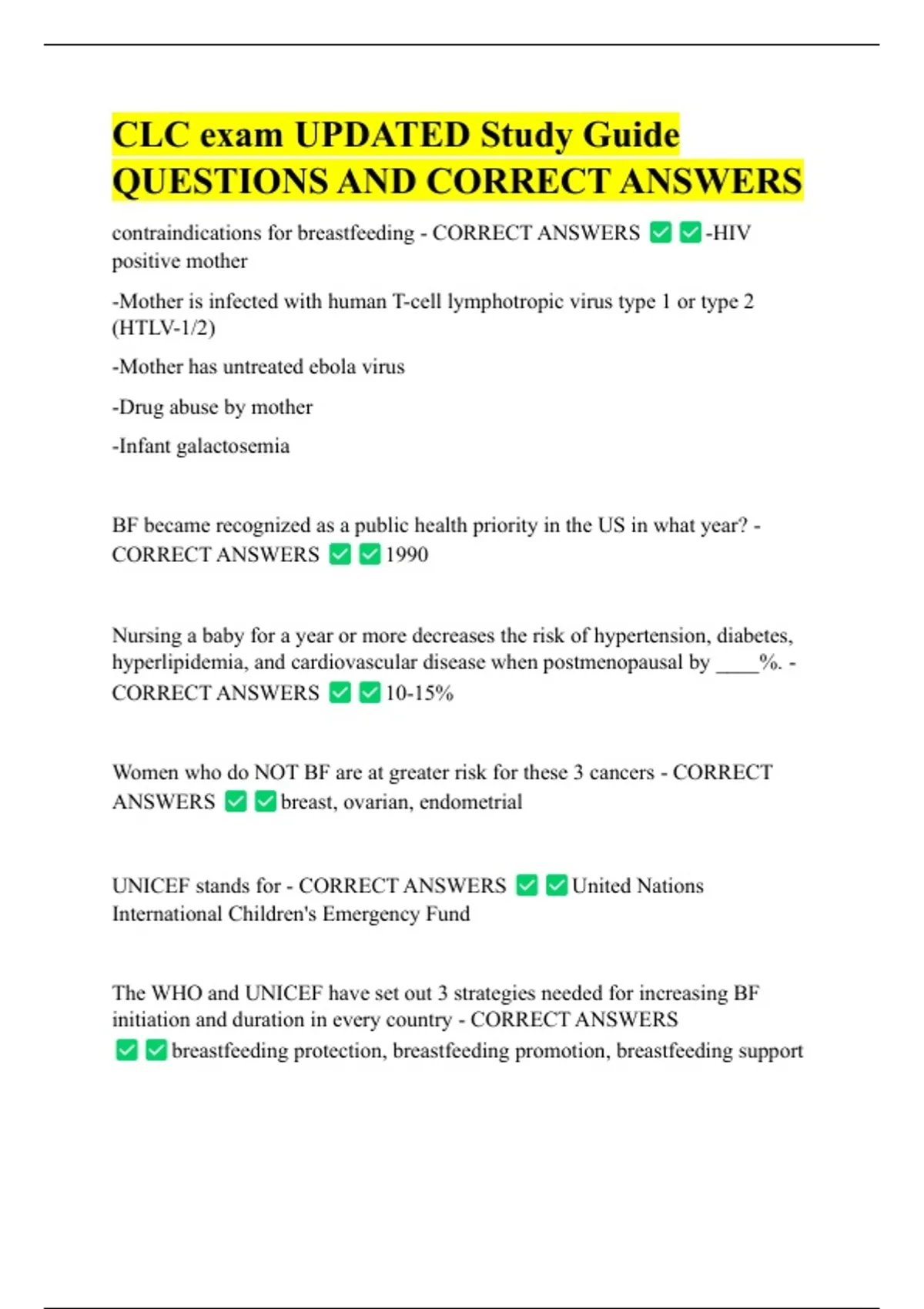 CLC exam UPDATED Study Guide