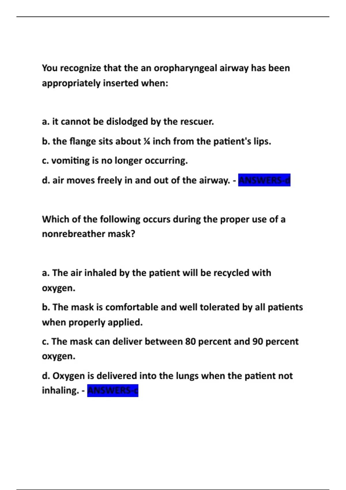 d. Apply a nonrebreather mask. - ANSWERS-b