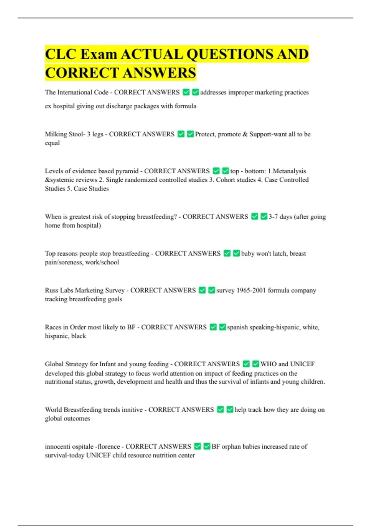 CLC Exam ACTUAL QUESTIONS AND CORRECT ANSWERS