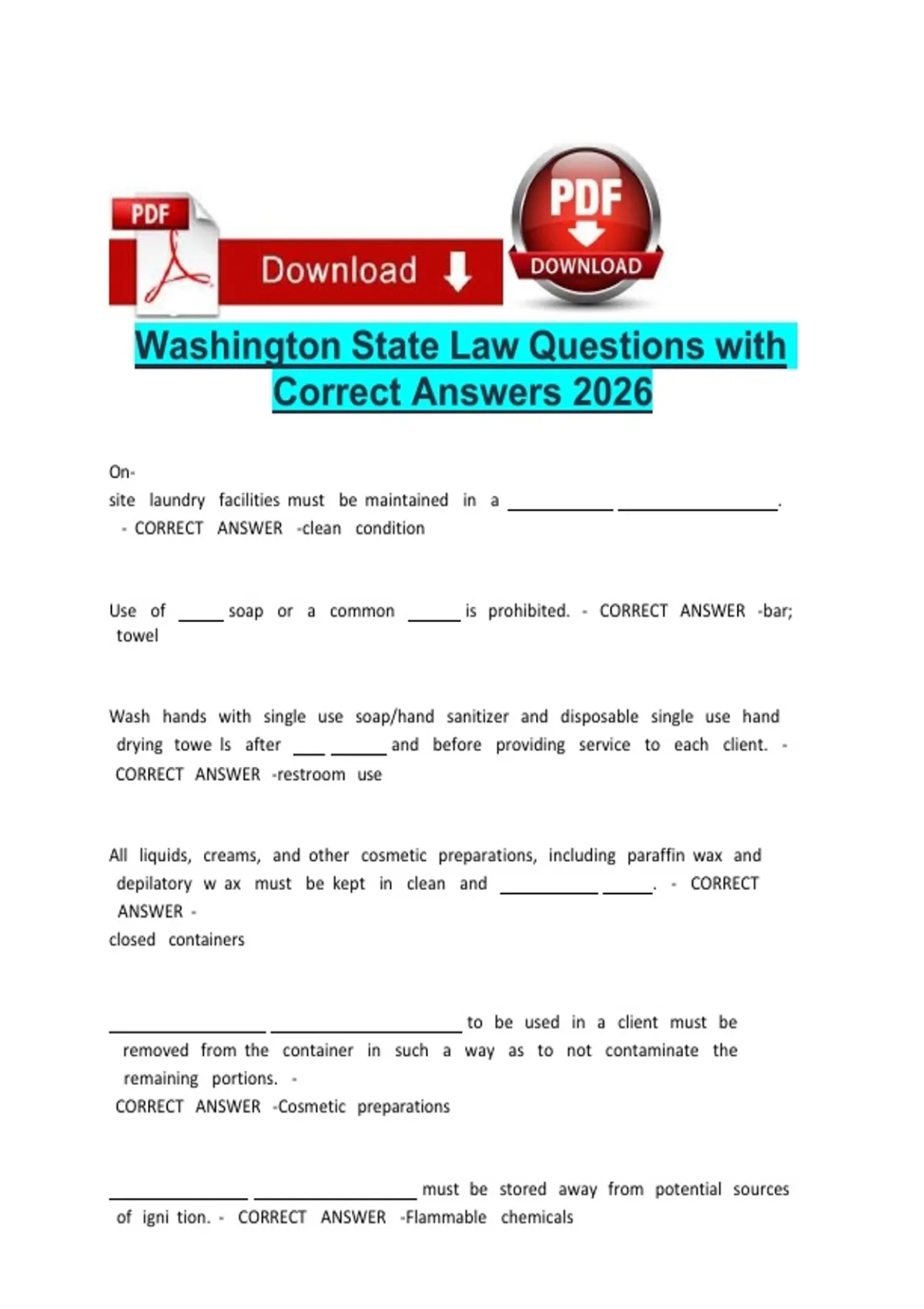Washington State Law Questions with Correct Answers 2026
