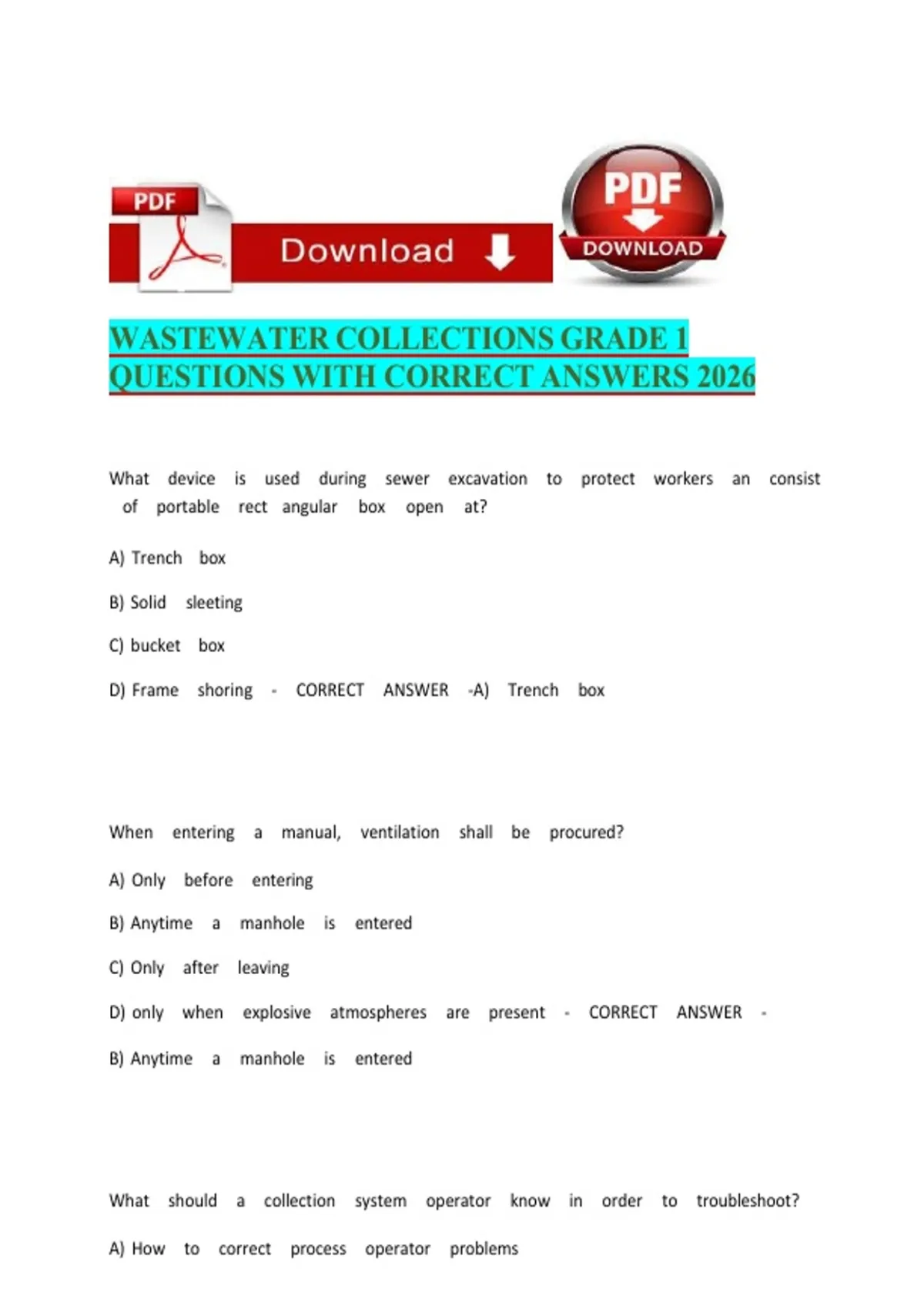 WASTEWATER COLLECTIONS GRADE 1 QUESTIONS WITH CORRECT ANSWERS 2026