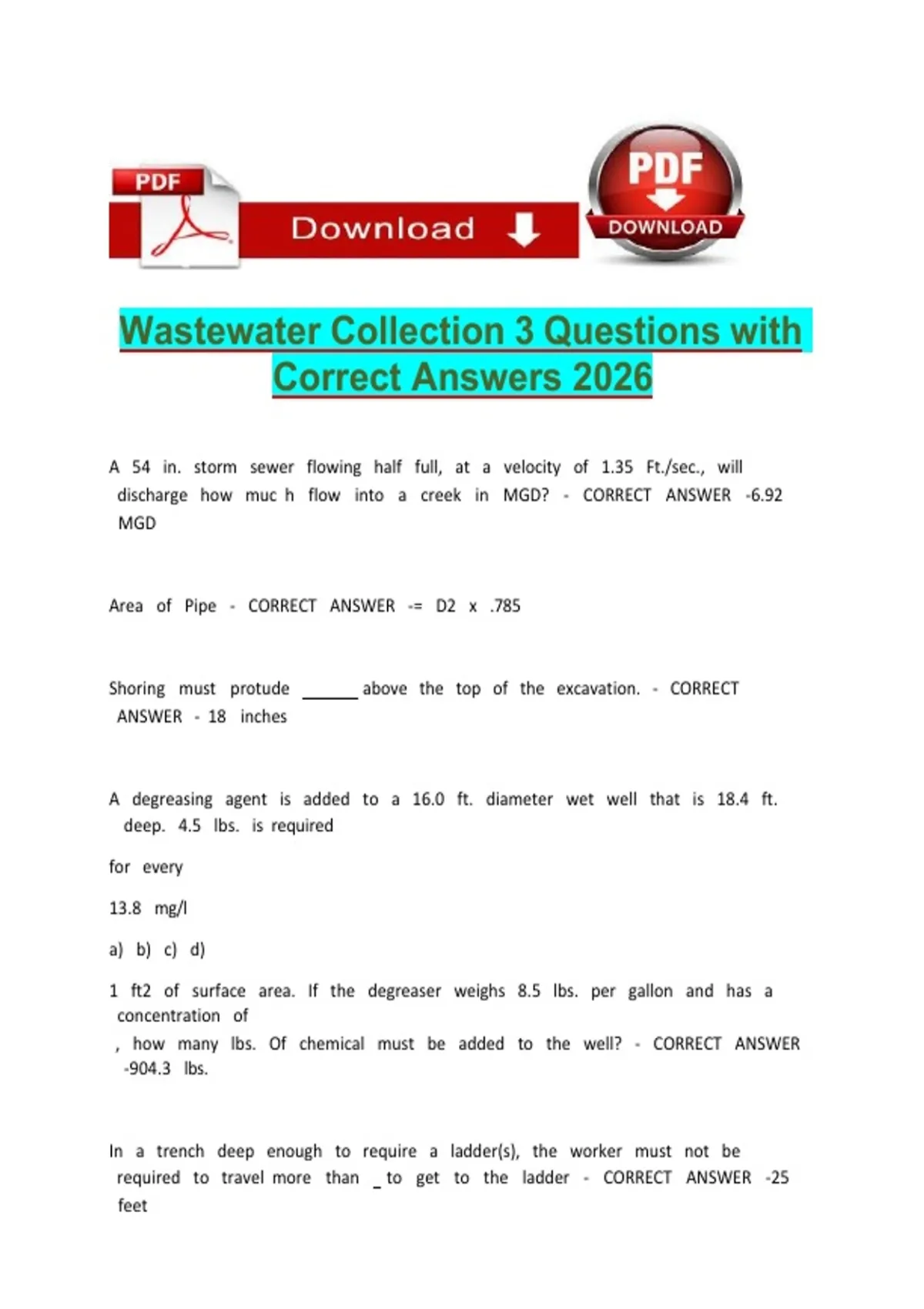 Wastewater Collection 3 Questions with Correct Answers 2026