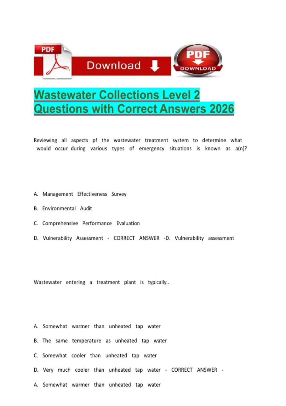 Wastewater Collections Level 2 Questions with Correct Answers 2026