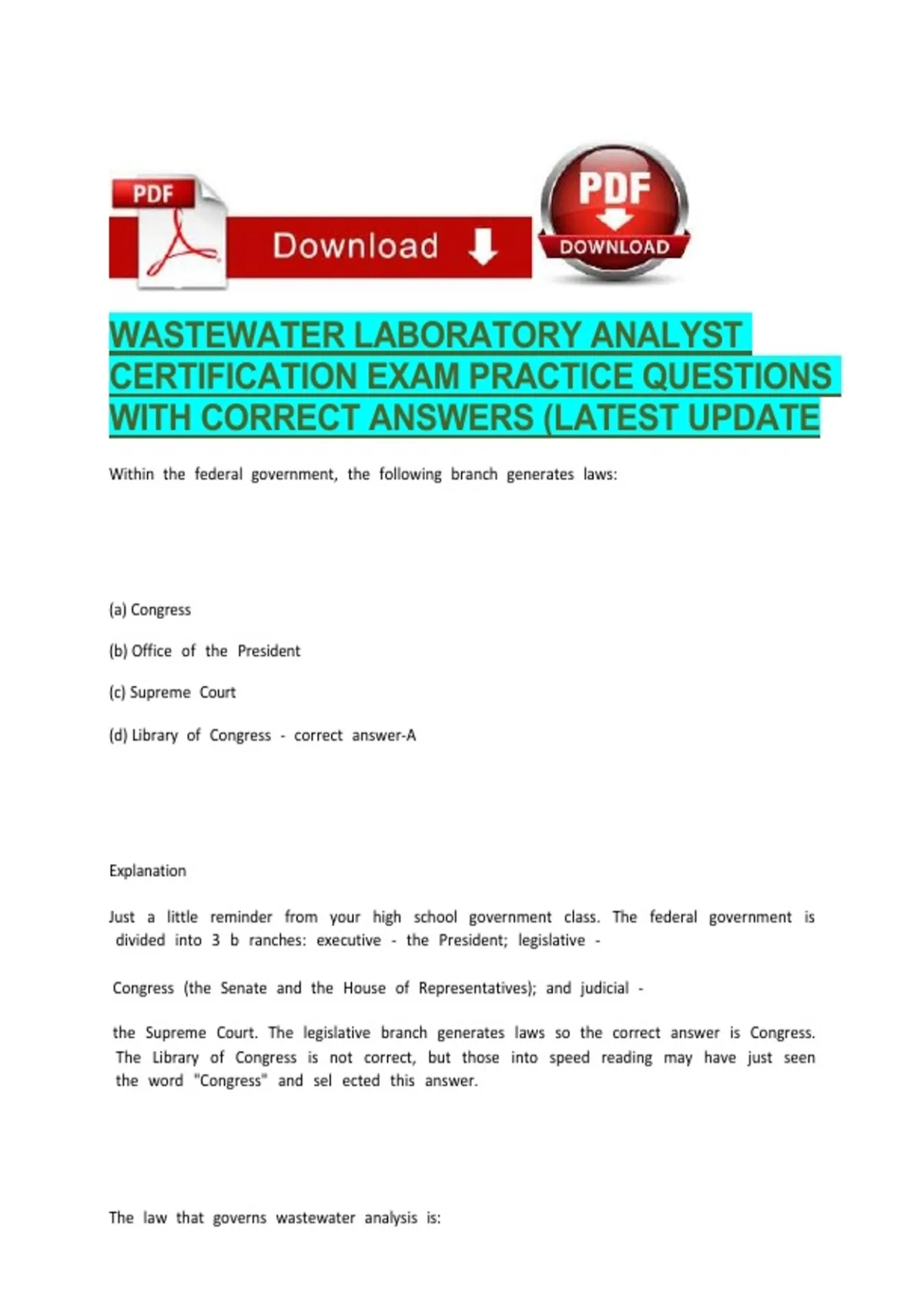 WASTEWATER LABORATORY ANALYST CERTIFICATION EXAM PRACTICE