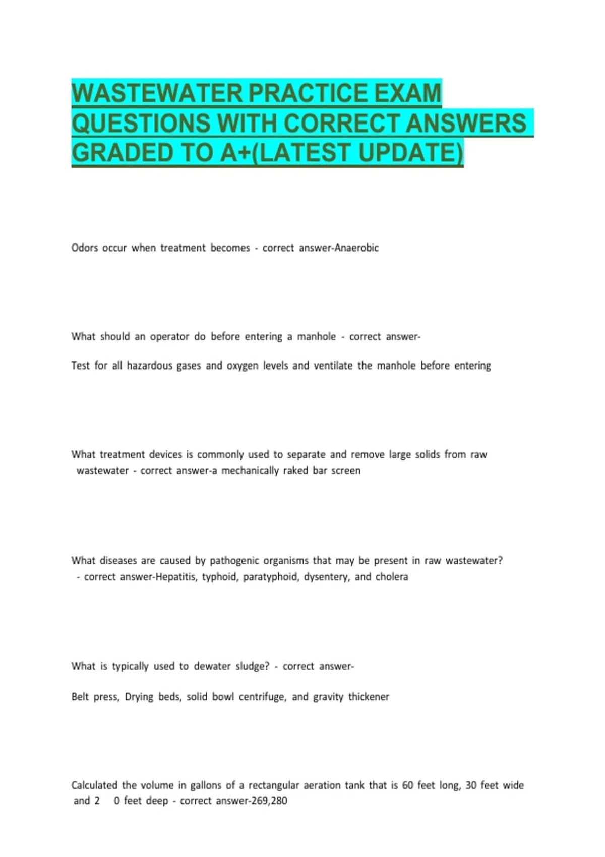 WASTEWATER PRACTICE EXAM