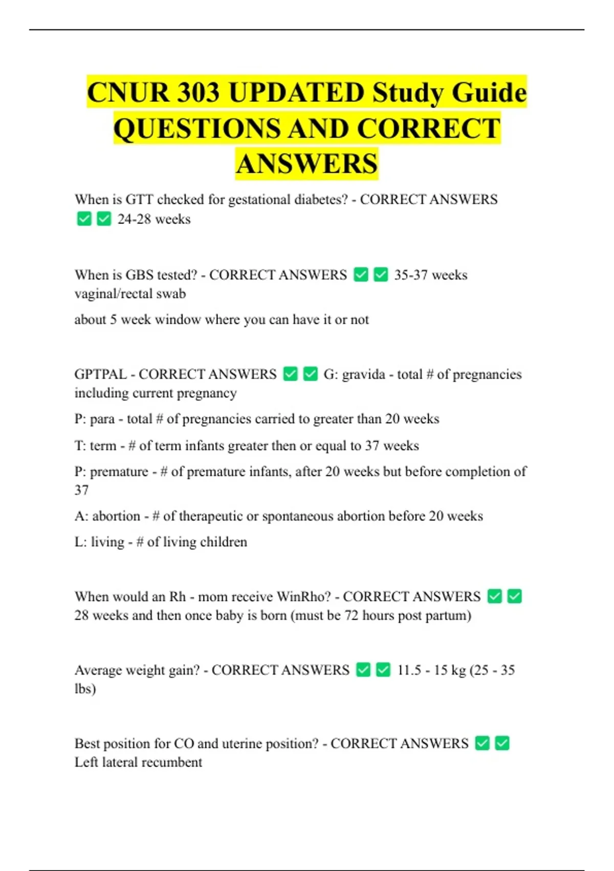 CNUR 303 UPDATED Study Guide