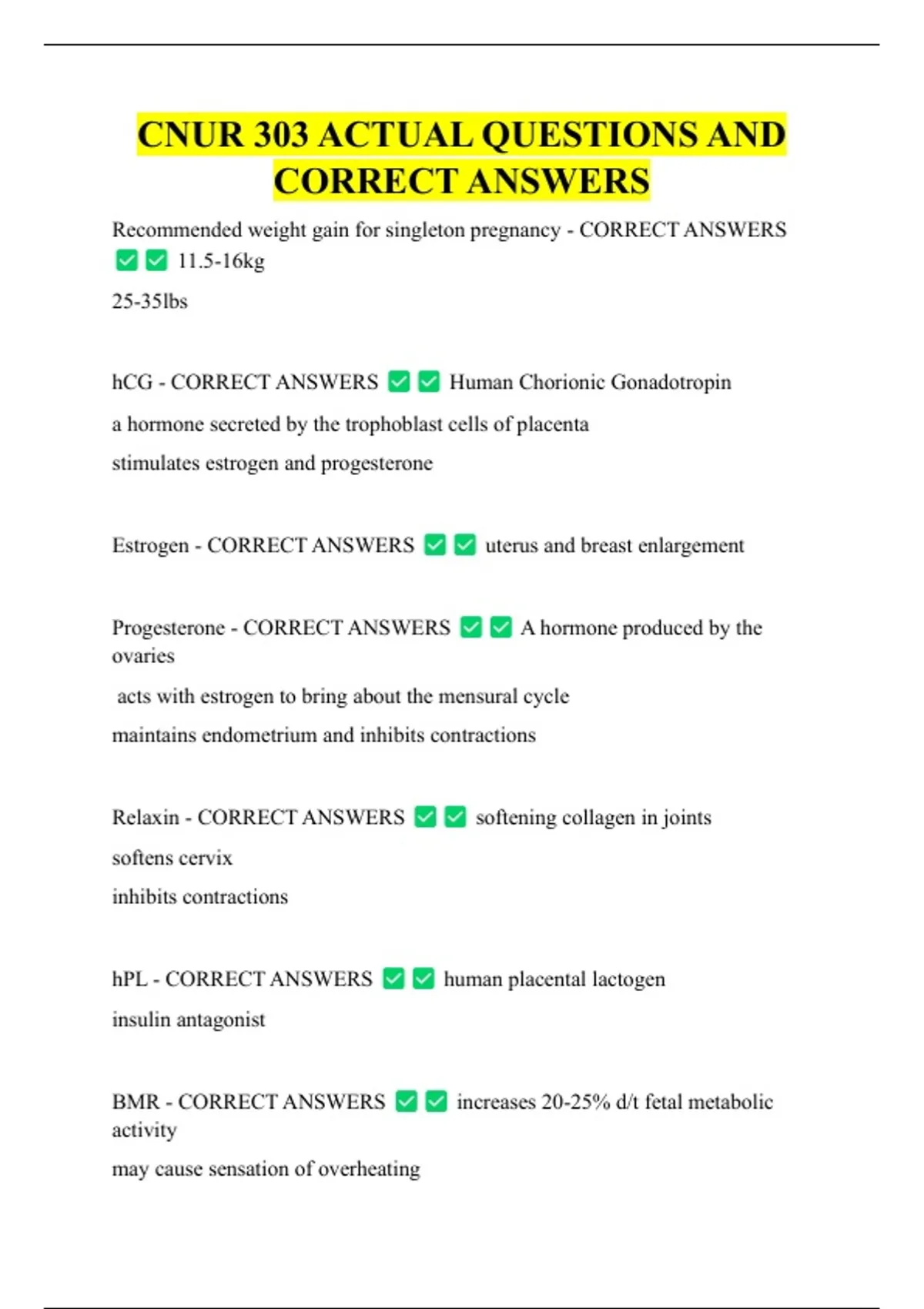 CNUR 303 ACTUAL QUESTIONS AND