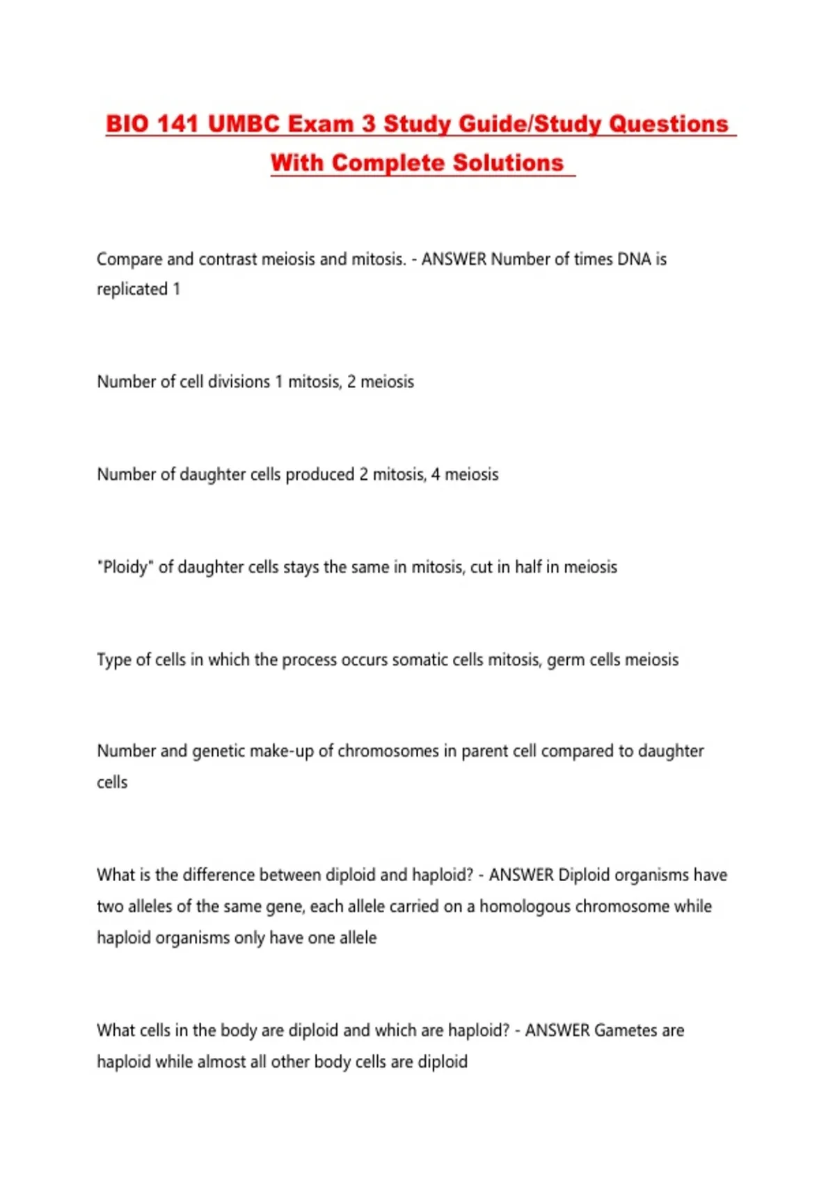 BIO 141 UMBC Exam 3 Study Guide/Study Questions With Complete Solutions ...