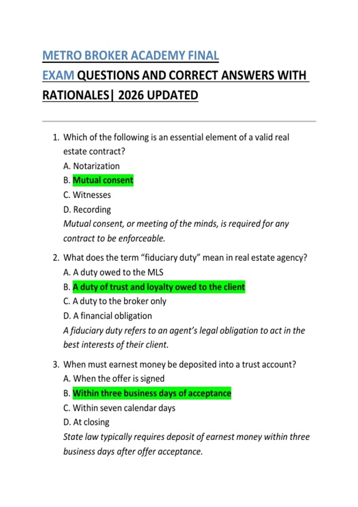 EXAM QUESTIONS AND CORRECT ANSWERS WITH