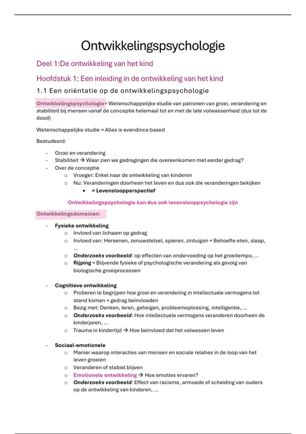 Samenvatting ontwikkelingspsychologie