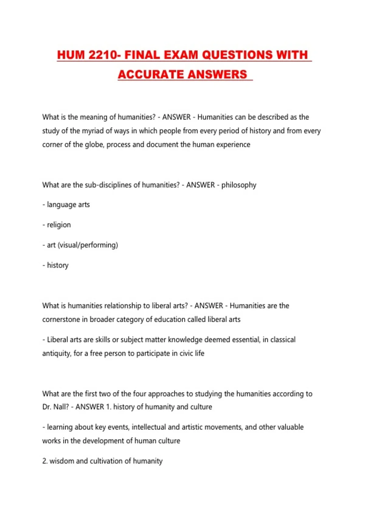 HUM 2210- FINAL EXAM QUESTIONS WITH