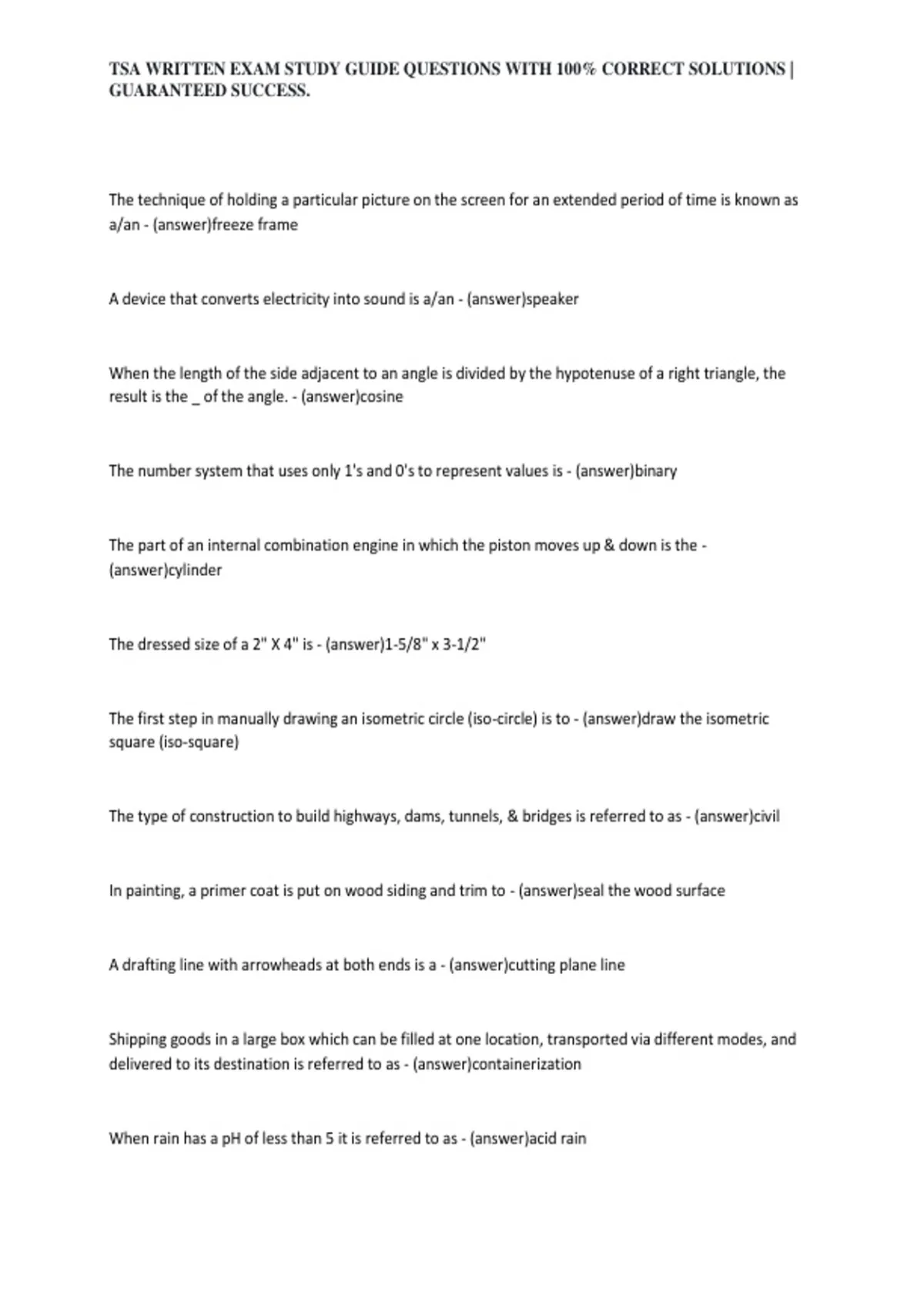, TSA WRITTEN EXAM STUDY GUIDE QUESTIONS WITH 100% CORRECT SOLUTIONS |