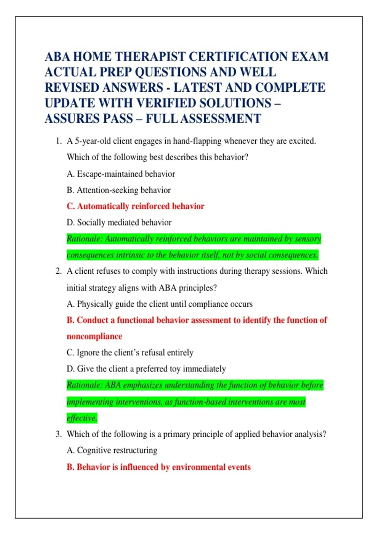 1. A 5-year-old client engages in hand-flapping whenever they are excited.