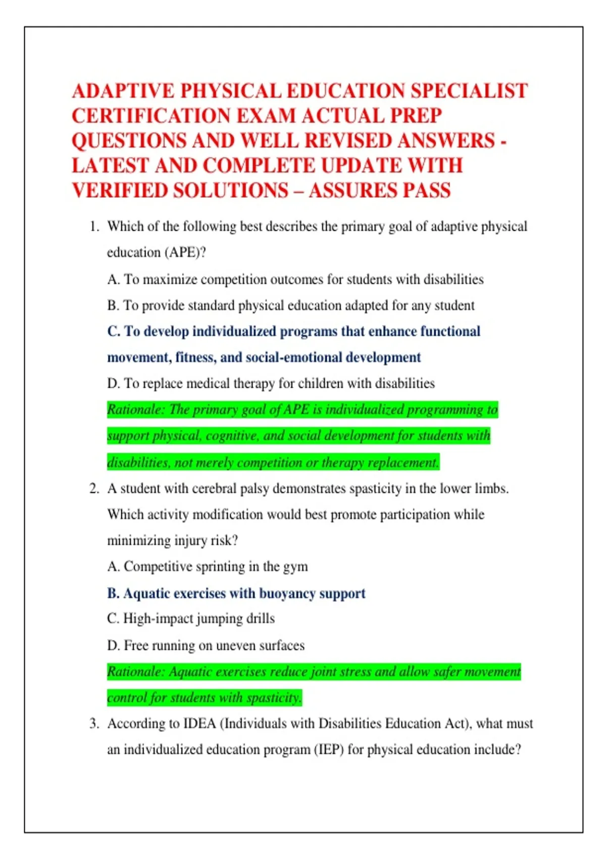 1. Which of the following best describes the primary goal of adaptive physical