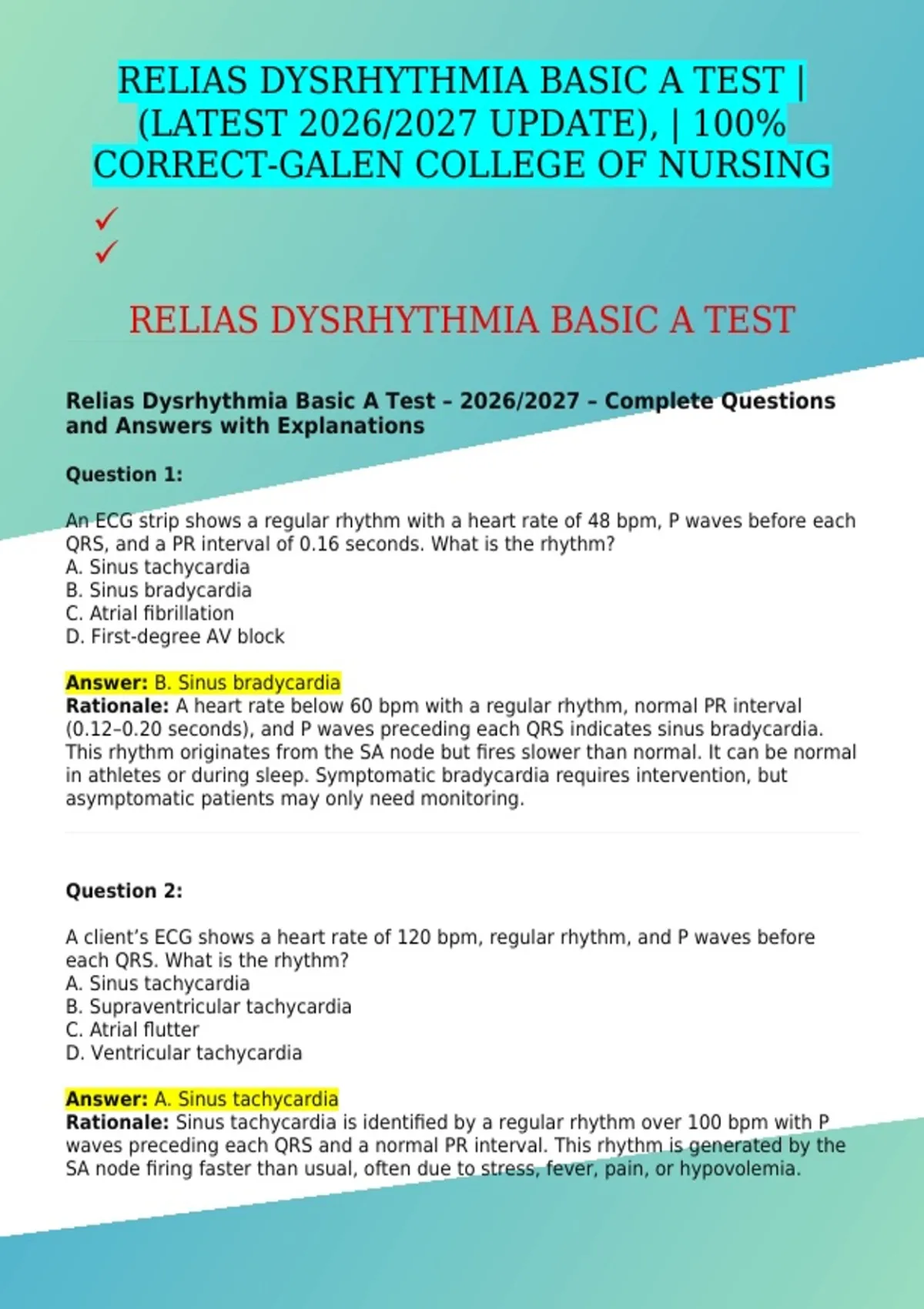 Relias Dysrhythmia Basic A Test – 2026/2027 – Complete Questions