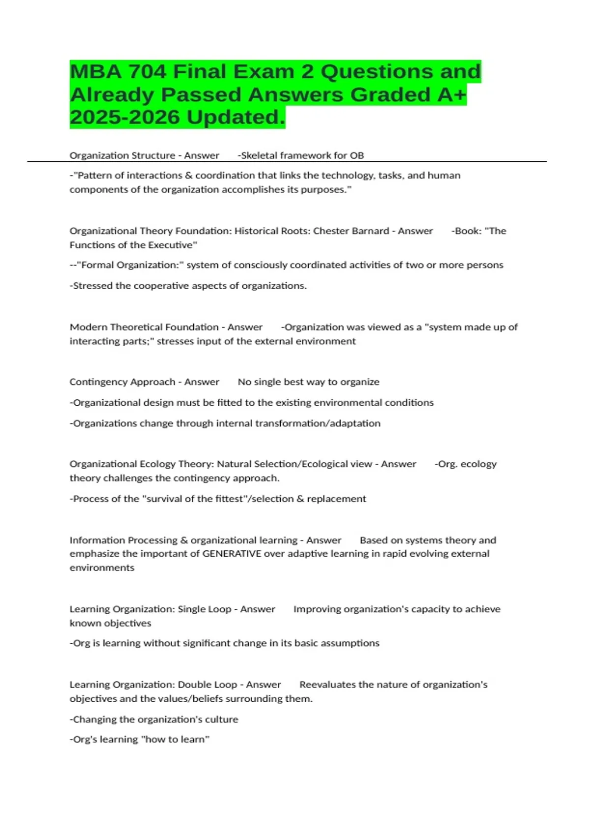 Organizational Theory Foundation: Historical Roots: Chester Barnard - Answer -Book: "The