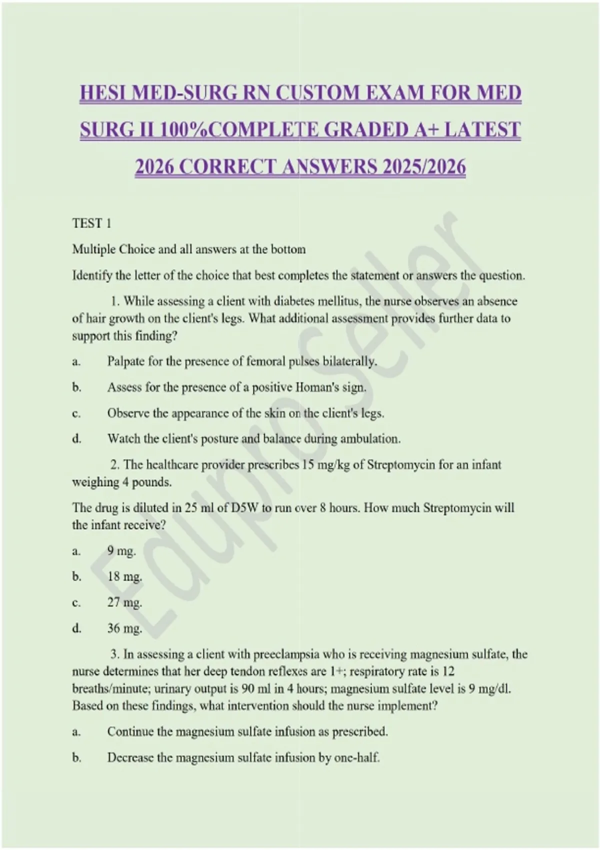 HESI MED-SURG RN CUSTOM EXAM FOR MED SURG II 100%COMPLETE GRADED A+ LATEST 2026 CORRECT ANSWERS 2025/2026