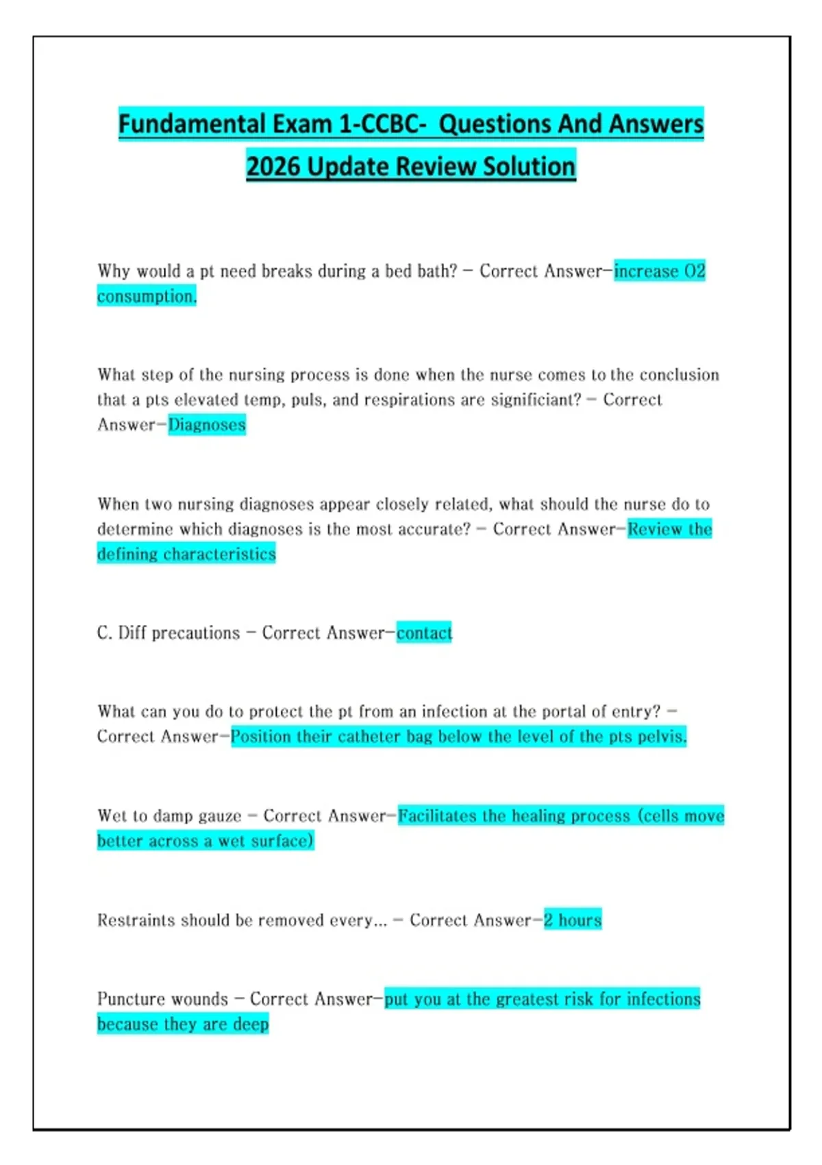 Fundamental Exam 1-CCBC- Questions And Answers 2026 Update Review Solution