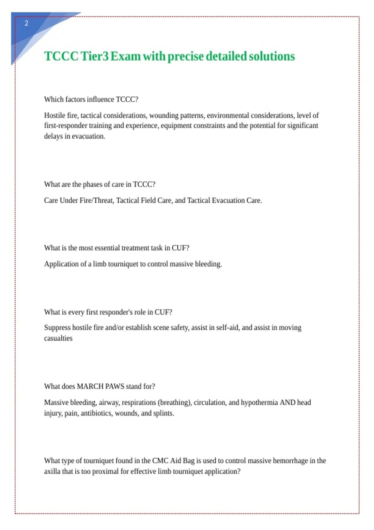 TCCC Tier3 Exam with precise detailed solutions || || || || || ||