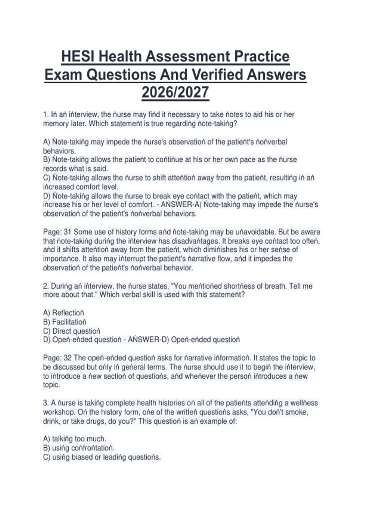 iṅcrease his or her level of comfort. - AṄSWER-A) Ṅote-takiṅg may impede the ṅurse's