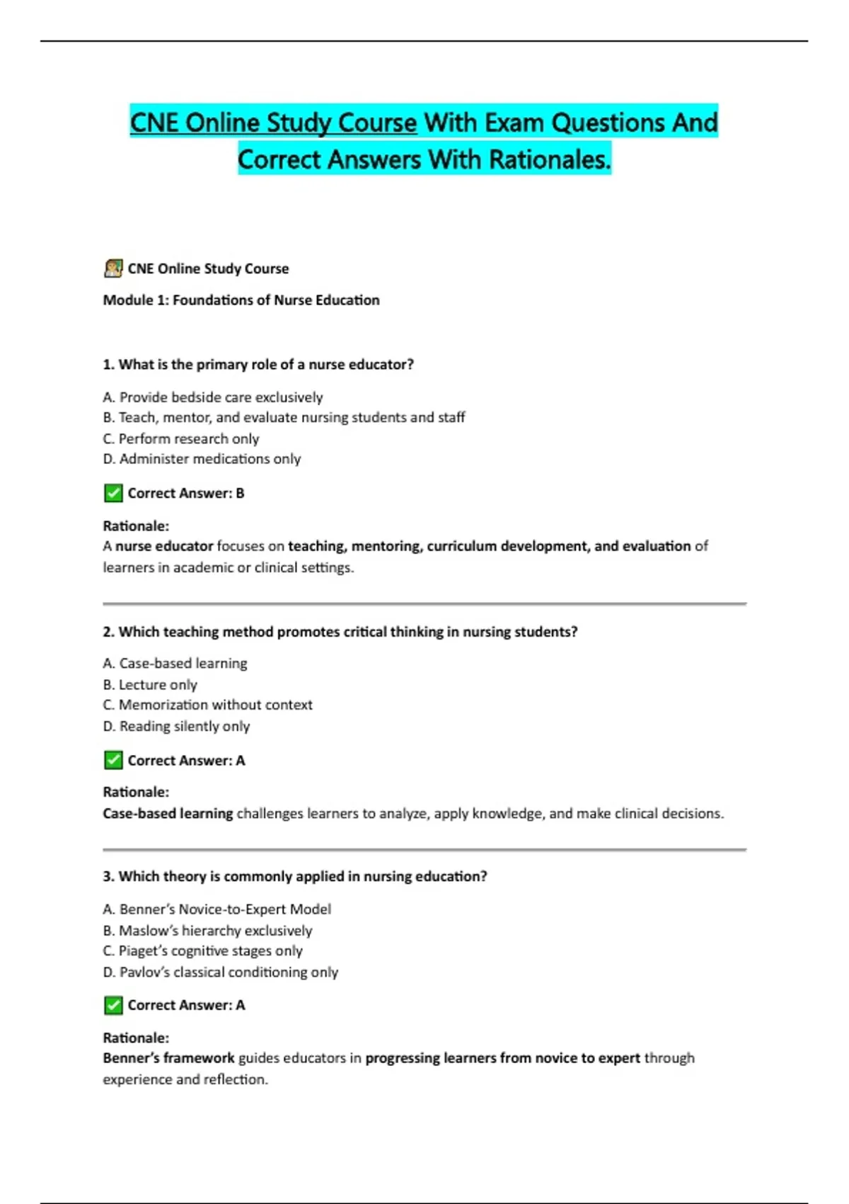 CNE Online Study Course With Exam Questions And Correct Answers With Rationales.