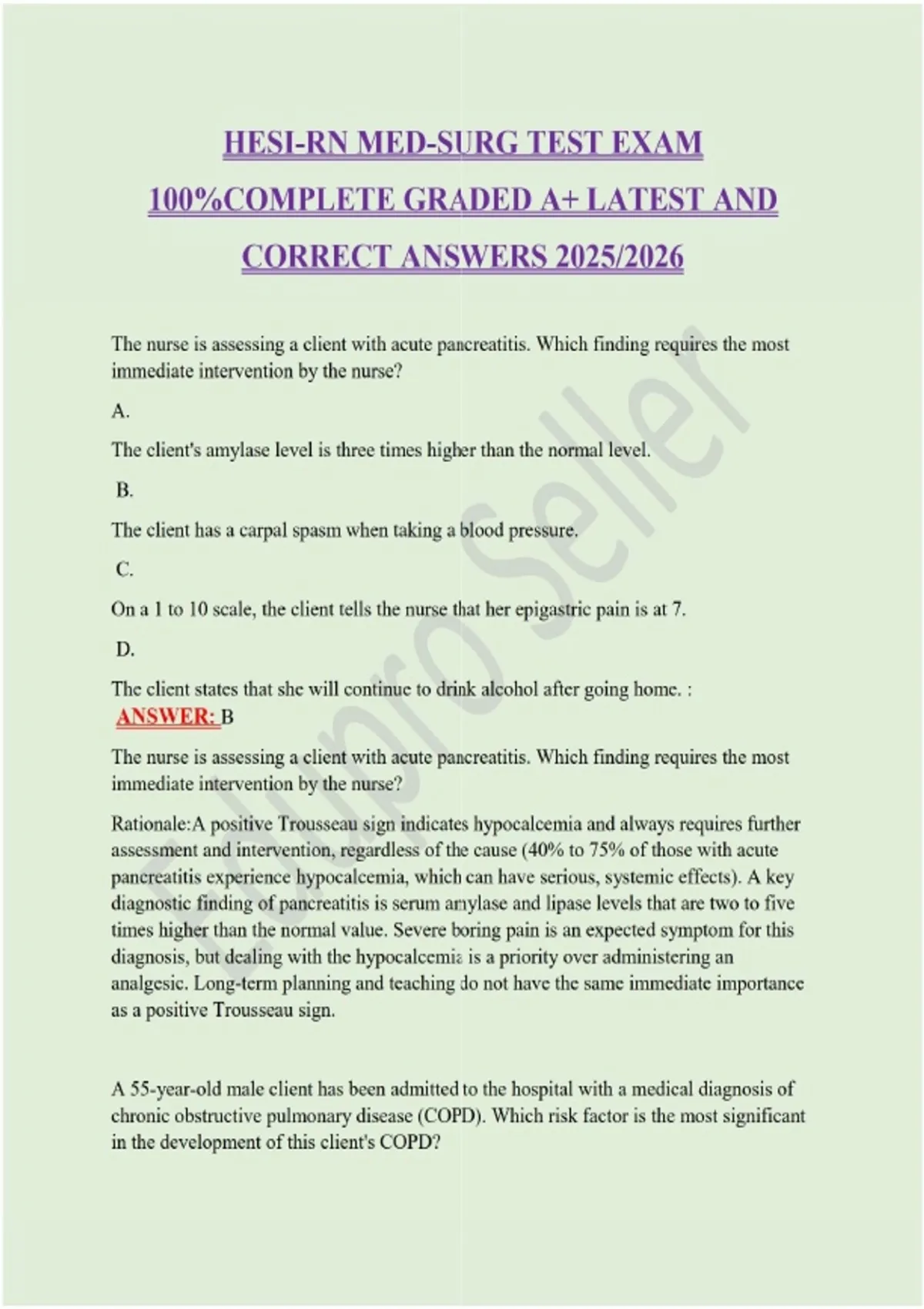HESI-RN MED-SURG TEST EXAM 100%COMPLETE GRADED A+ LATEST AND CORRECT ANSWERS 2025/2026