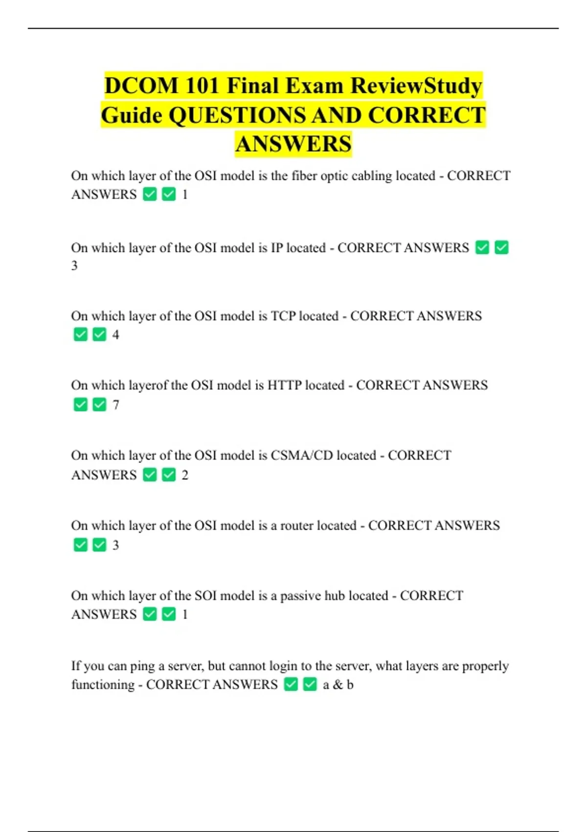 On which layer of the OSI model is the fiber optic cabling located - CORRECT