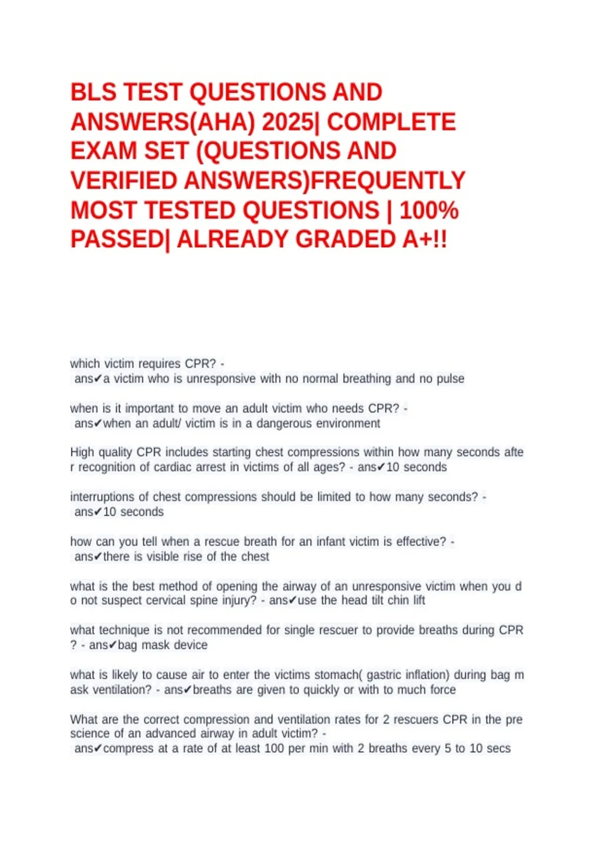 ANSWERS(AHA) 2025| COMPLETE
